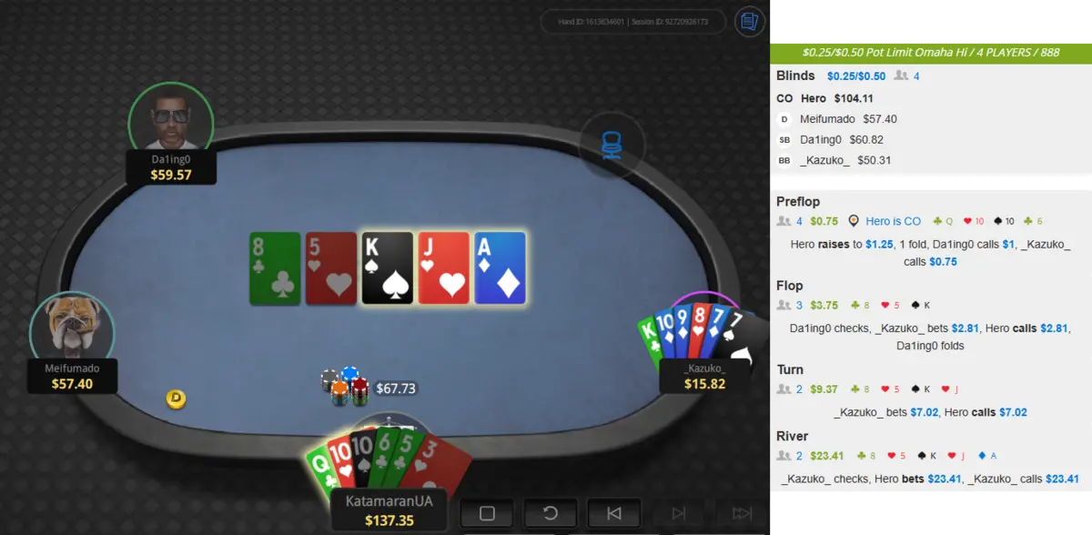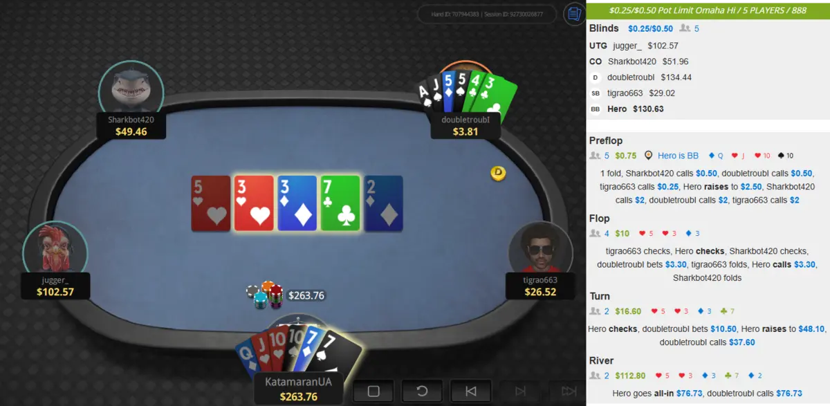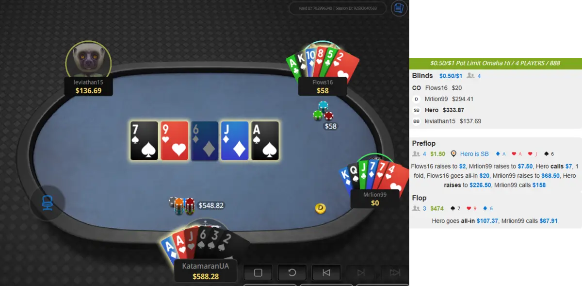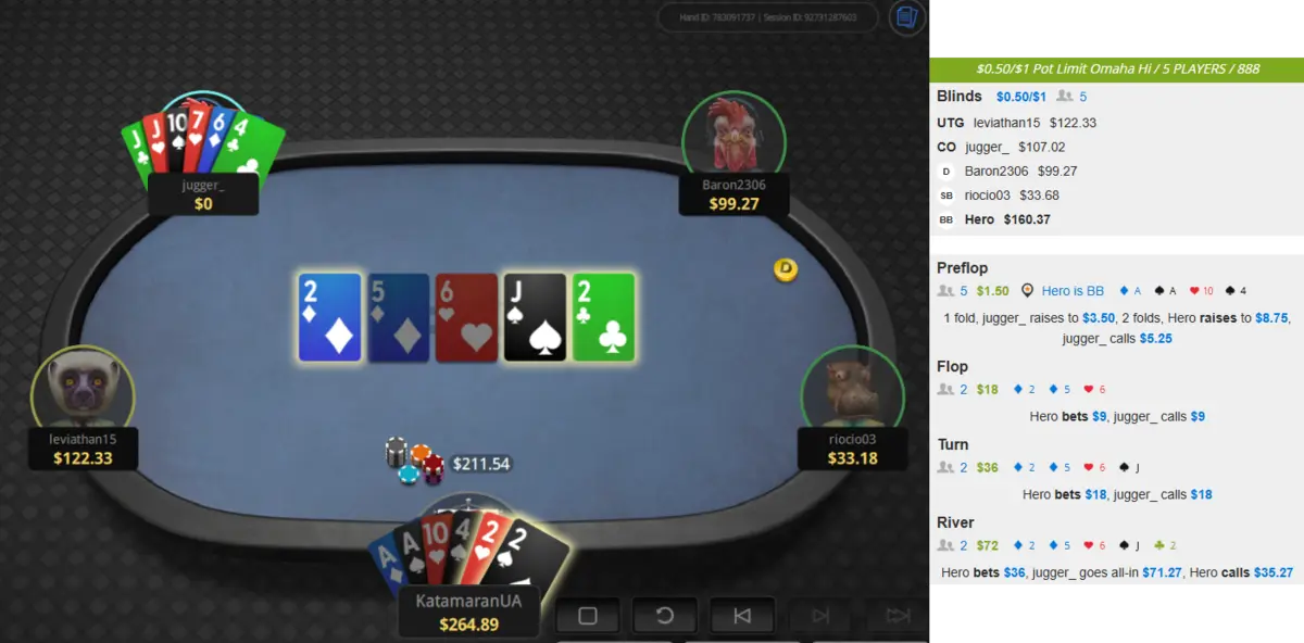 цього разу рівер вніс справедливість, але, б***, це тупо брєд з його картами префлоп таке чудити.