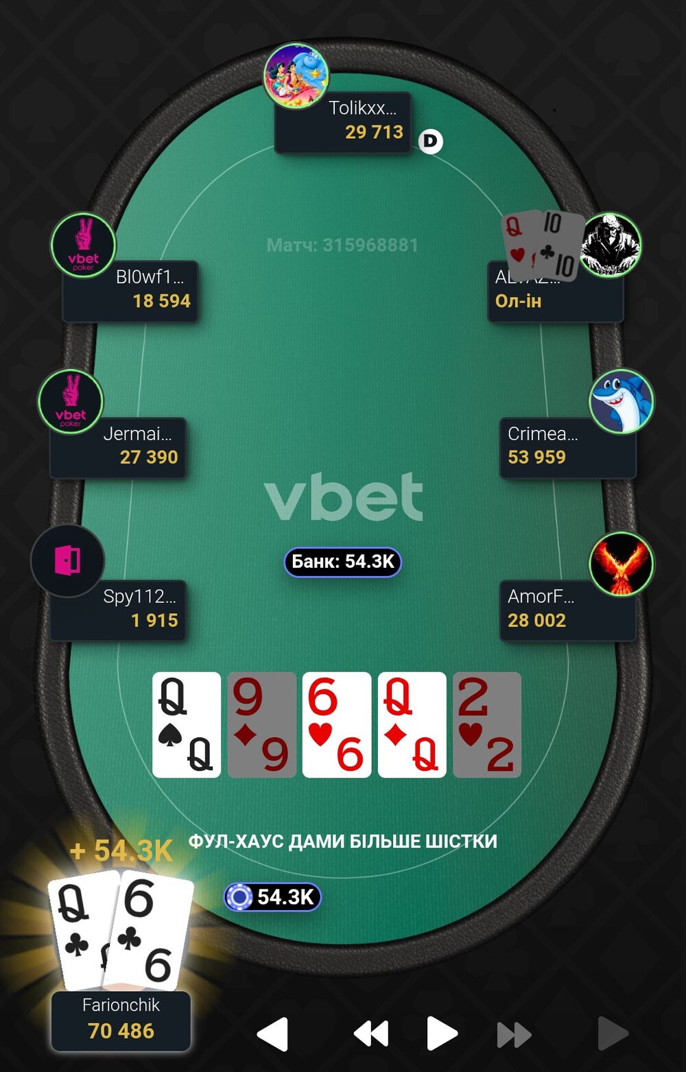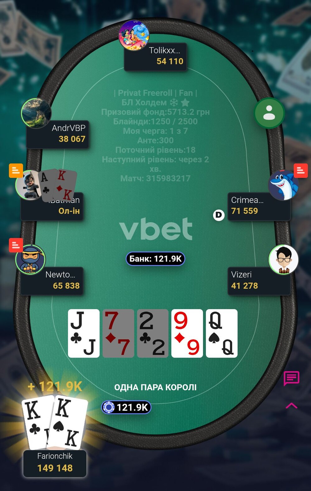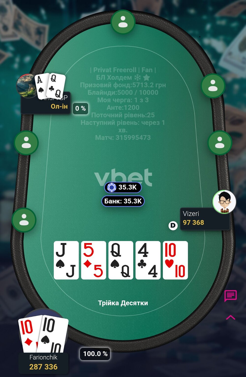 Слів багато було а емоцій ще більше )Зловивши К♥️К♣️ із моєю ставкою в пів банка він зрівняв Стіл:2♦️Q♦️Q♣️ Розуміючи що він міг зрівняти з АА чи з АQ...