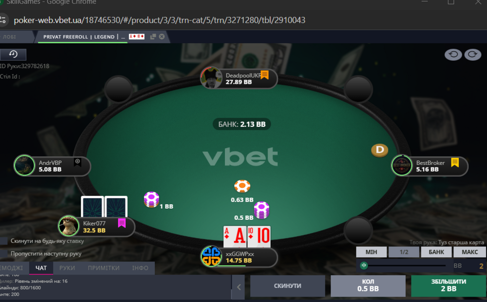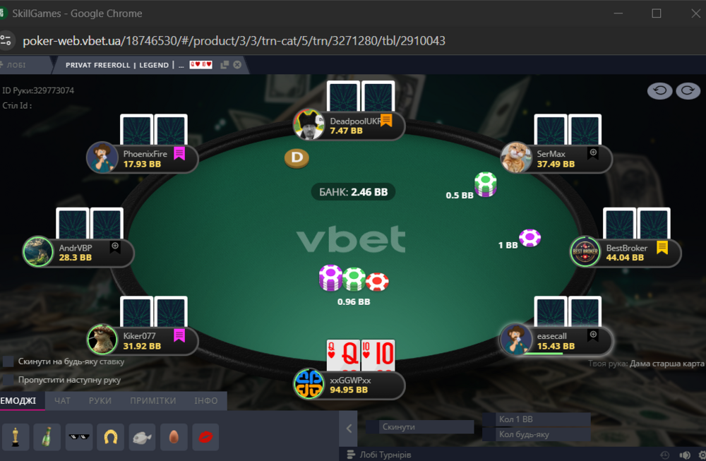 Намагався тиснути на стіл, 3бетив, конбетив, але отримував достойний відпір, та погано попадав у борди.