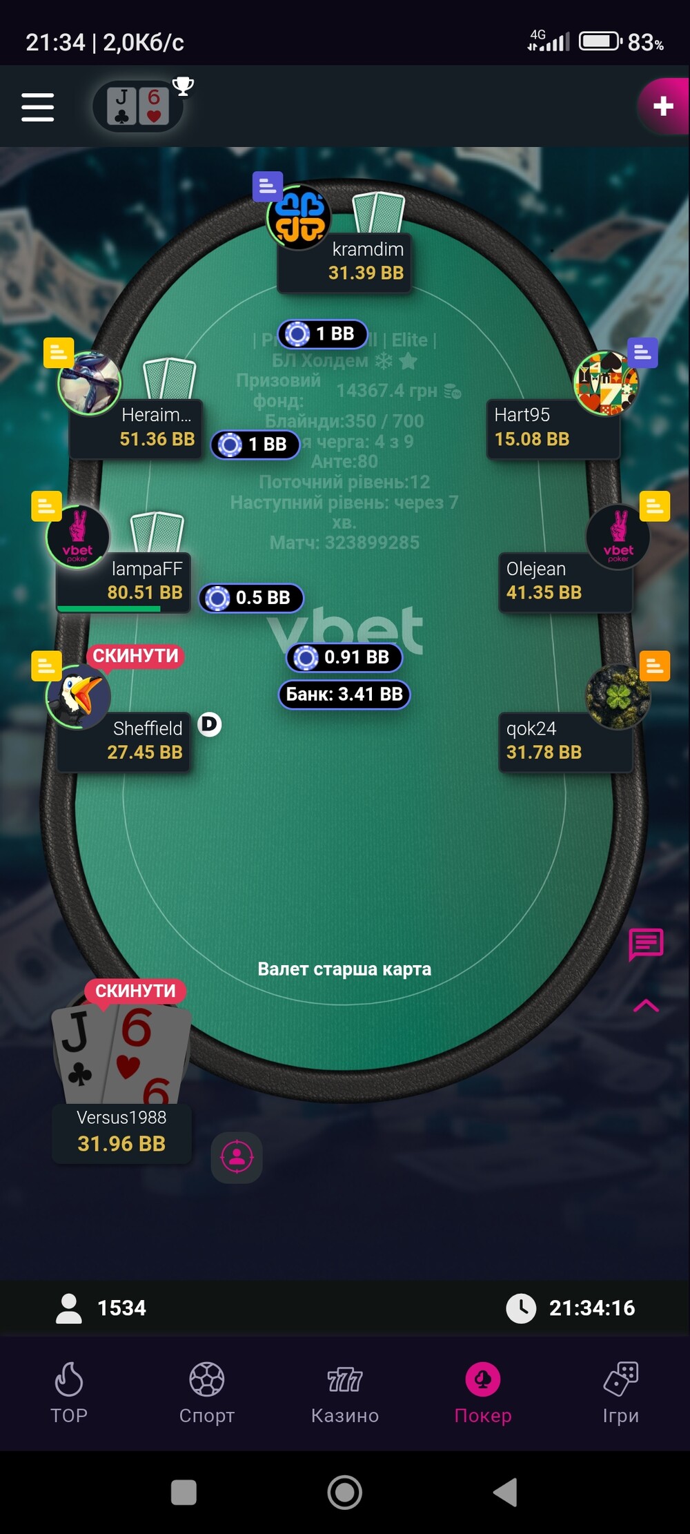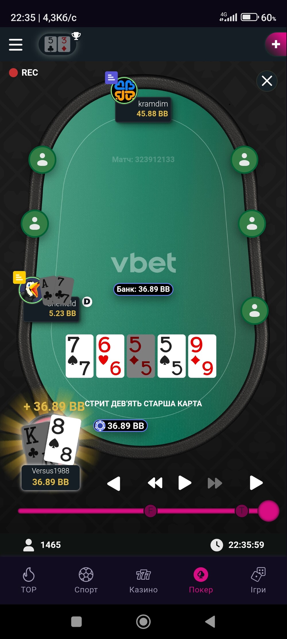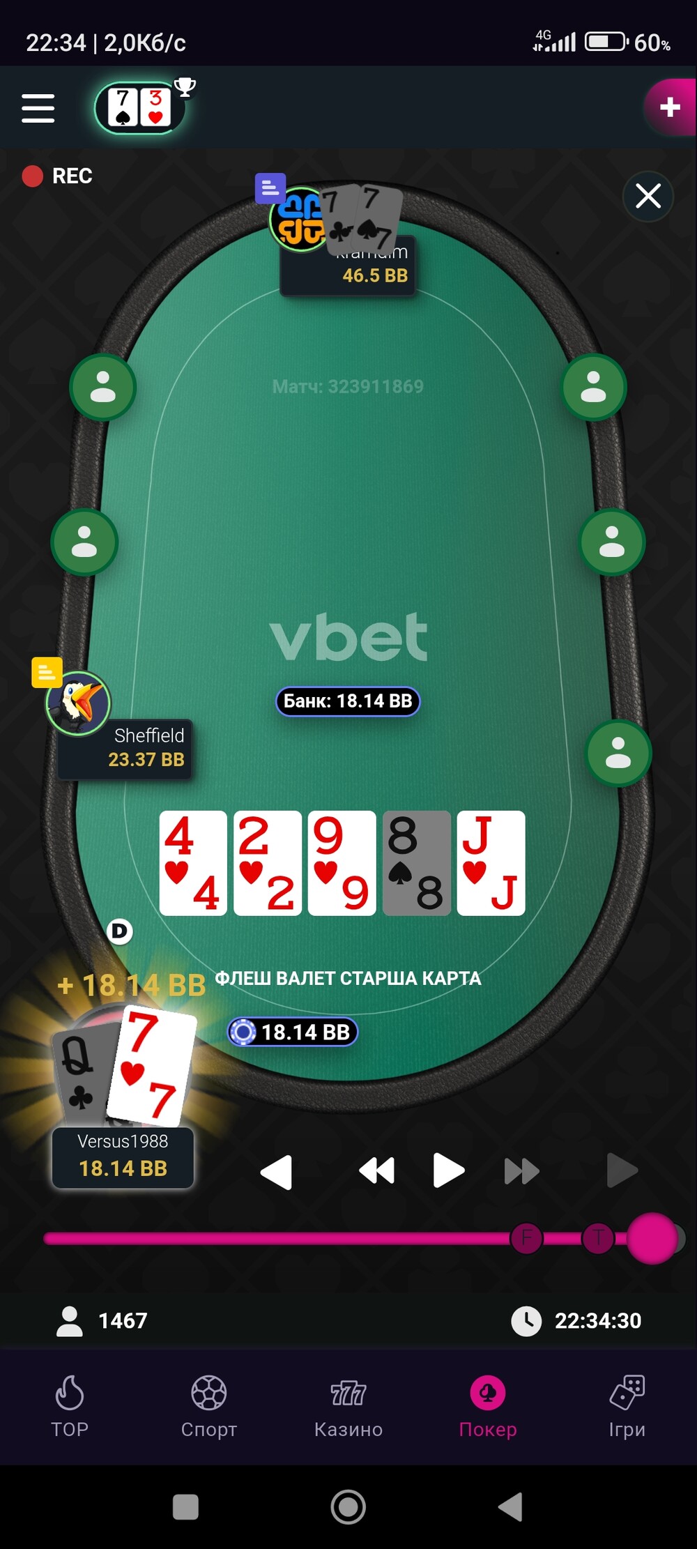 Першу годину майже нічого цікавого не було, двічі АК роздали, пару блайндів забрав. Також з К9о захистив ВБ, теж пару блайндів забрав з флешом до короля.