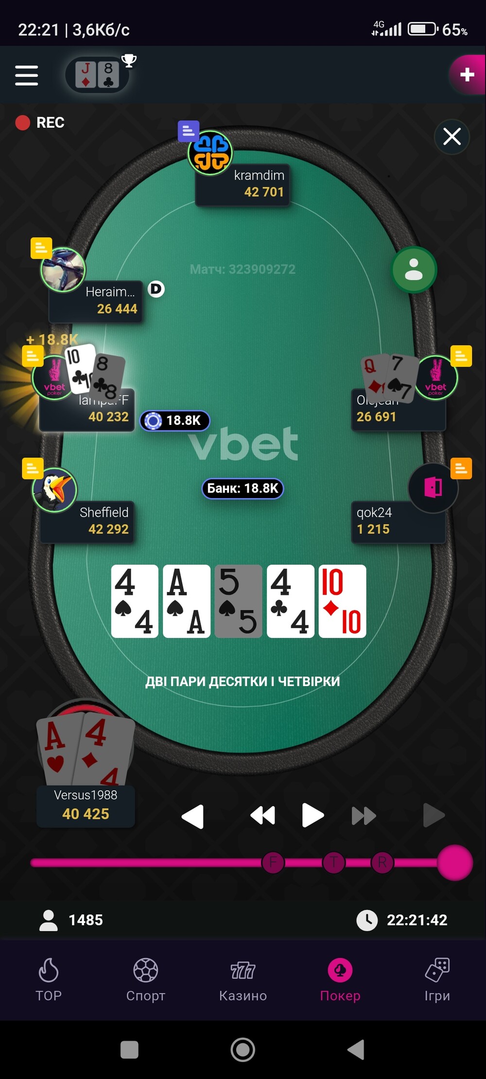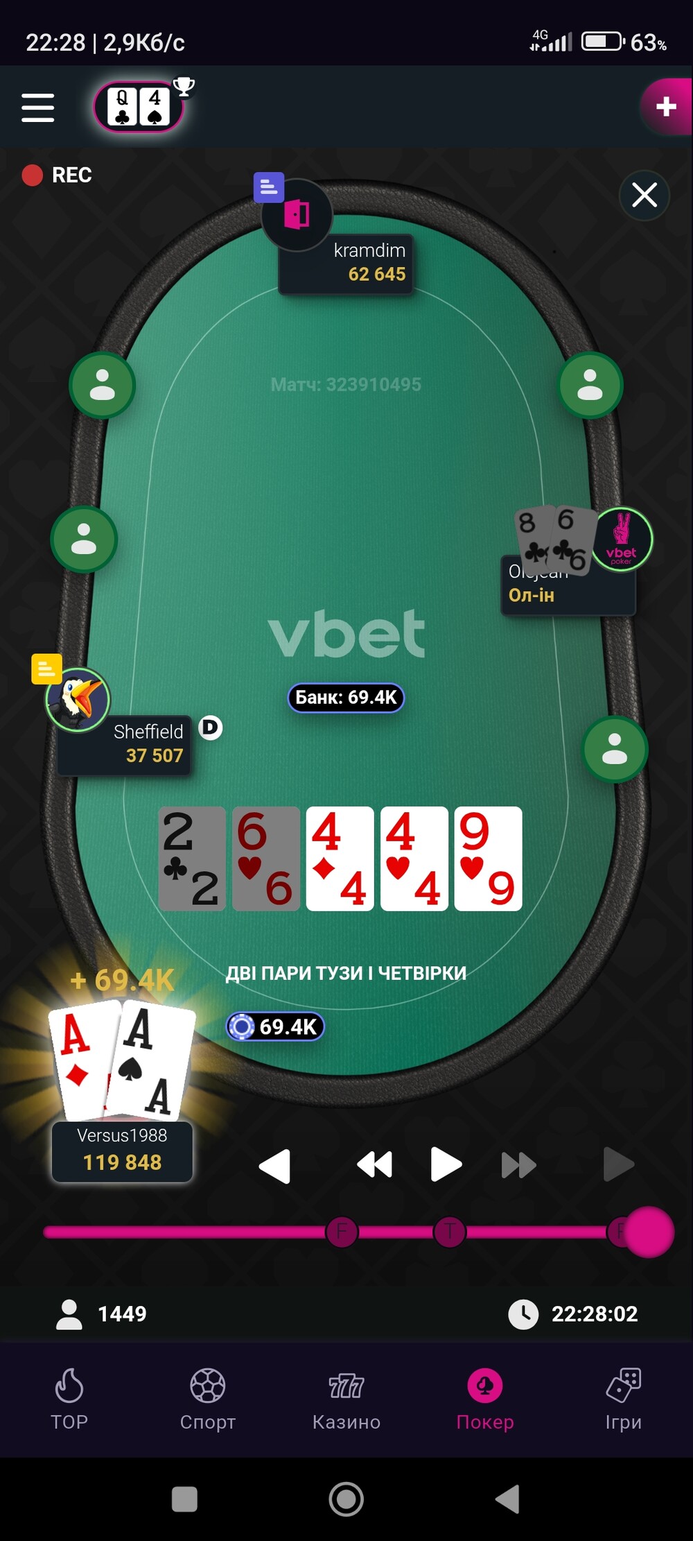 Пізніше мав шанс гарно розкрутитися та скинув префлоп А4.