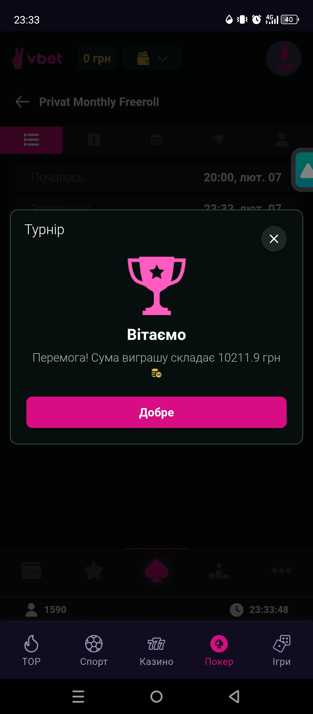 І знову перемога у покері