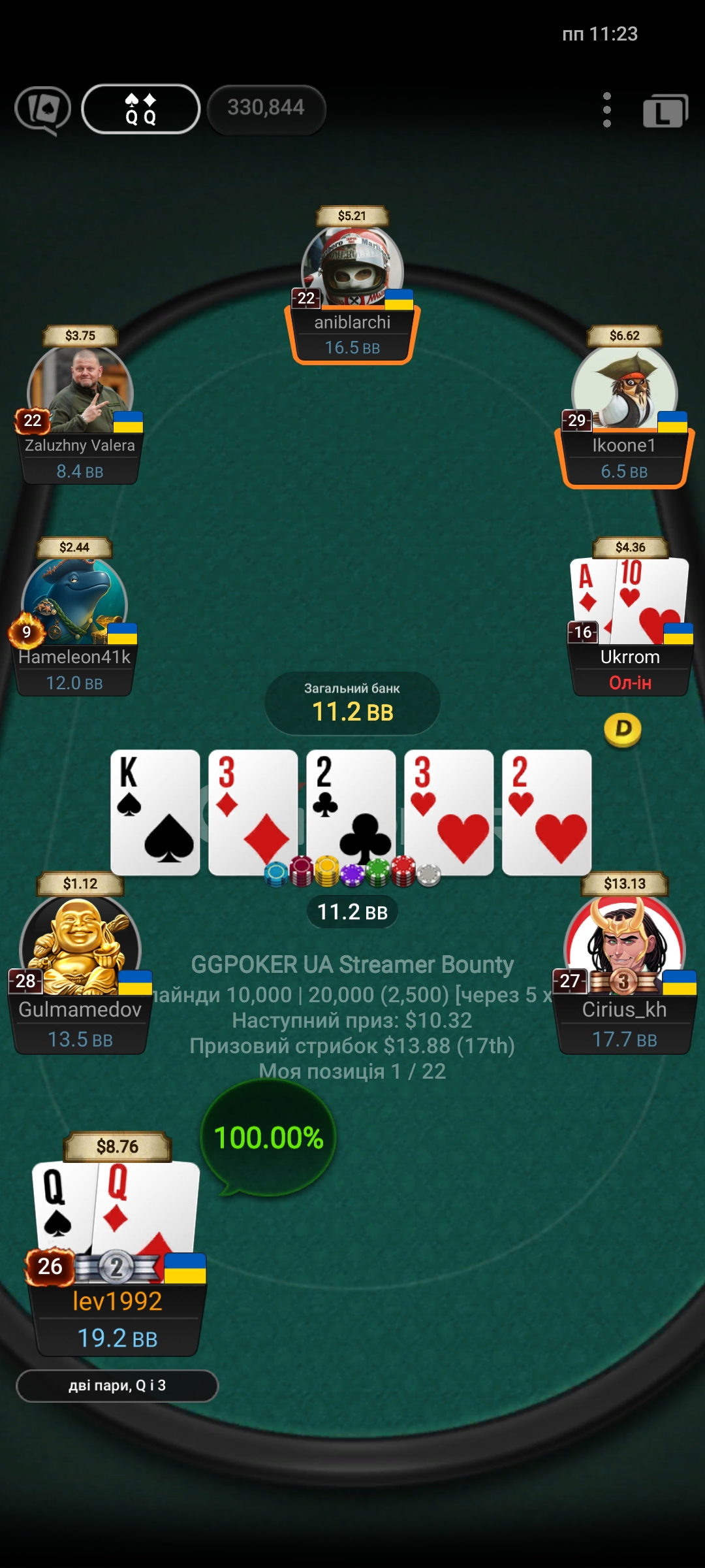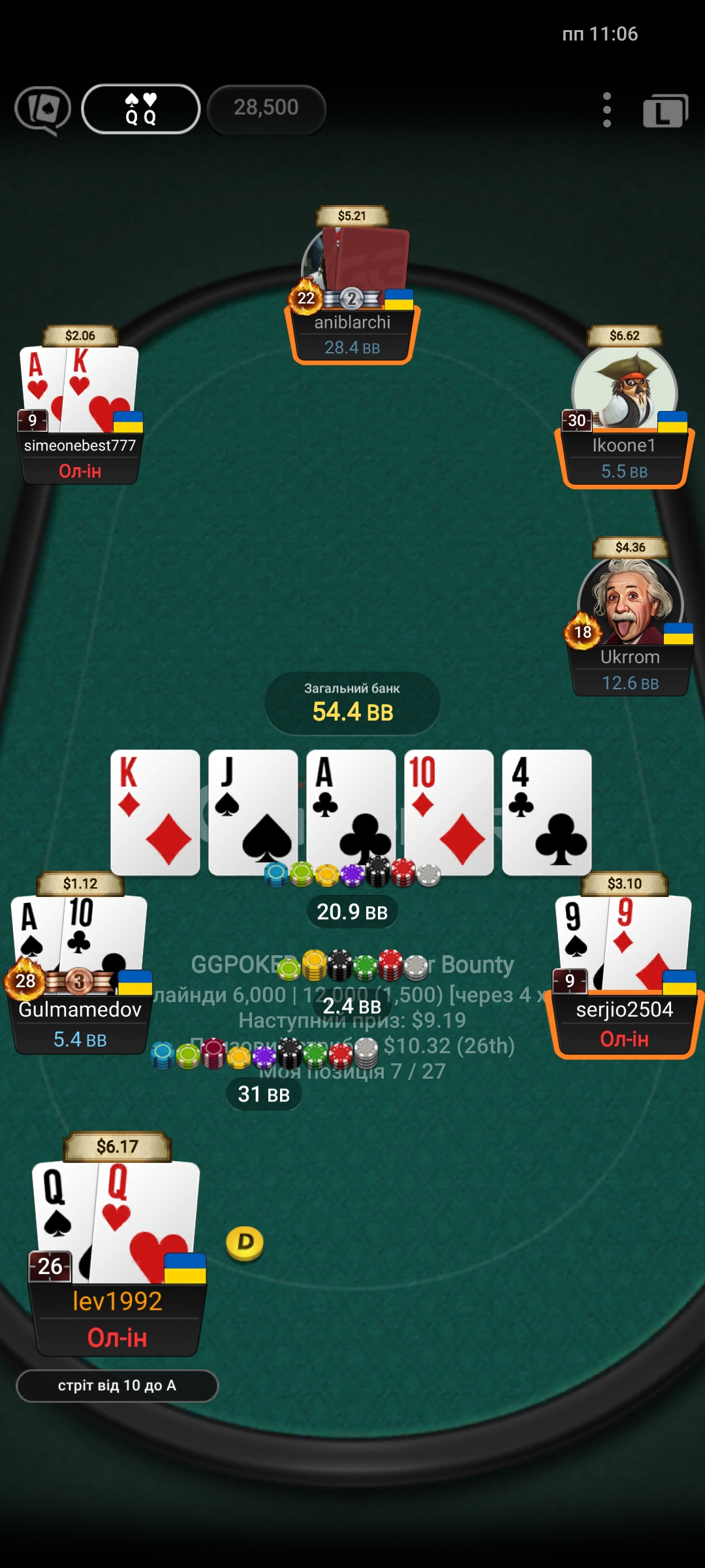 Ps: а тепер про гірку роздачу де я хочу почути вашу думку: прямий бабл я топ2 короткий іде оллін 3 вб чіпак турніру теж оллін ( перед цим агресії за ним не спостерігав) в мене QQ і я не зміг ризикнути всім стеком, наскільки тут поганий фолд???