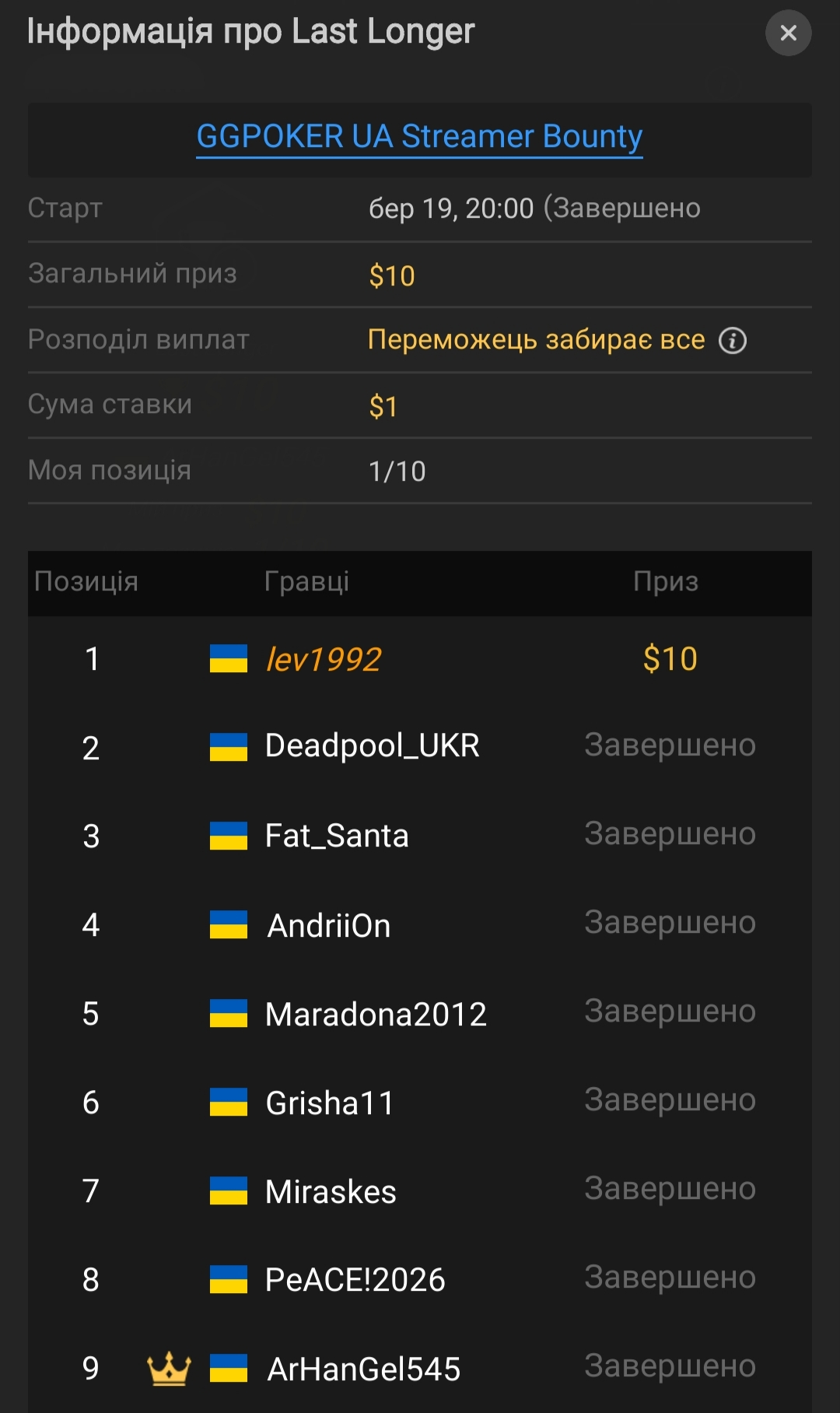 Ластлонгер це додаткова ставка в турнірі, в нашому випадку це 1 долар і хто з цих учасників протримається довше забирає приз🤝