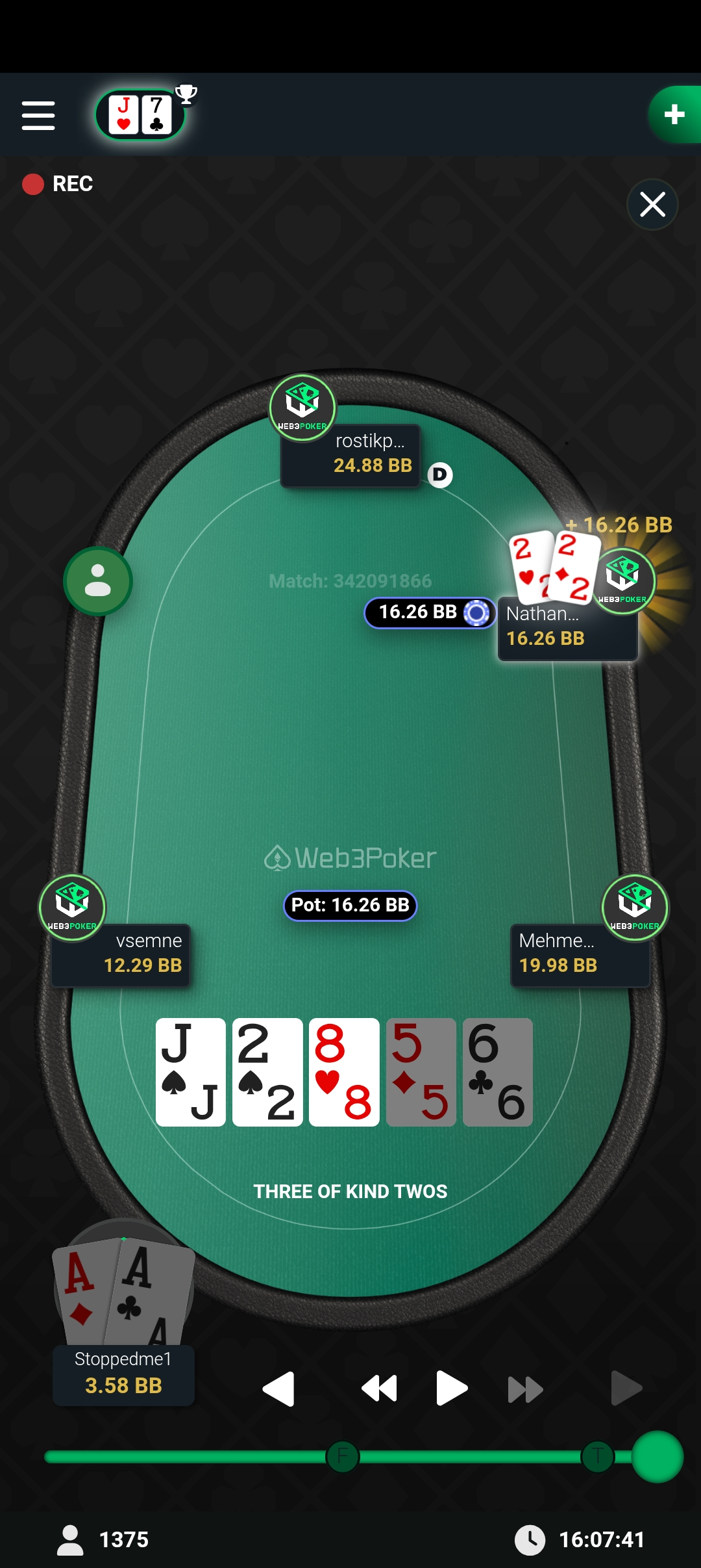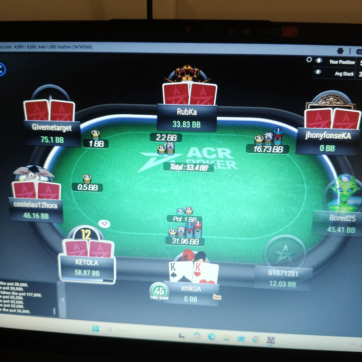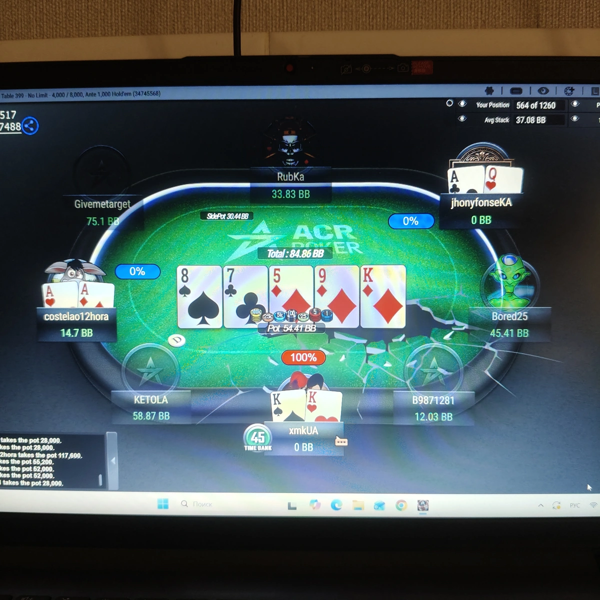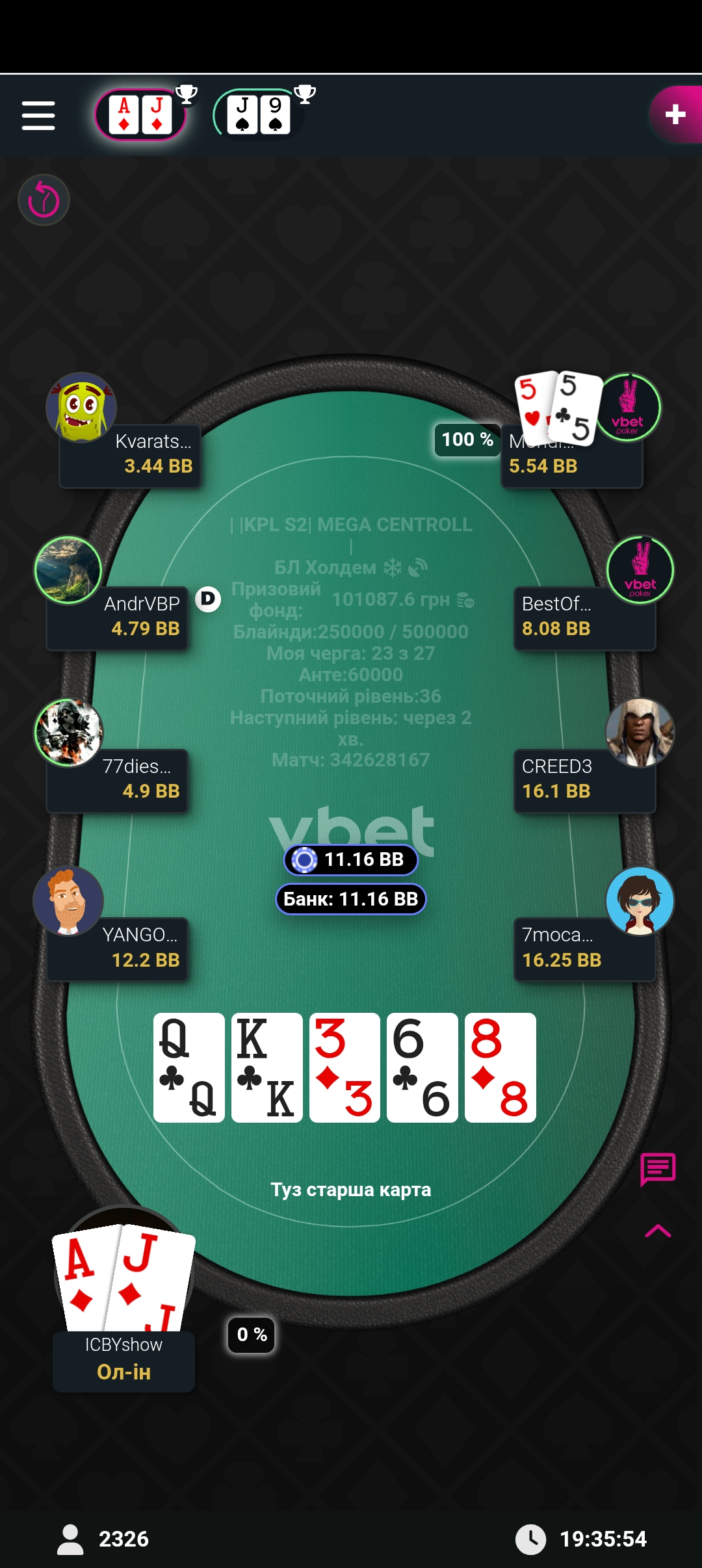 Я 216/246 опонент справа від мене відриває 2бб, я пуш ол-ін. Чесно кажучи я так з ним робив раза3-4 і він скидав, тож напевно він психанув)