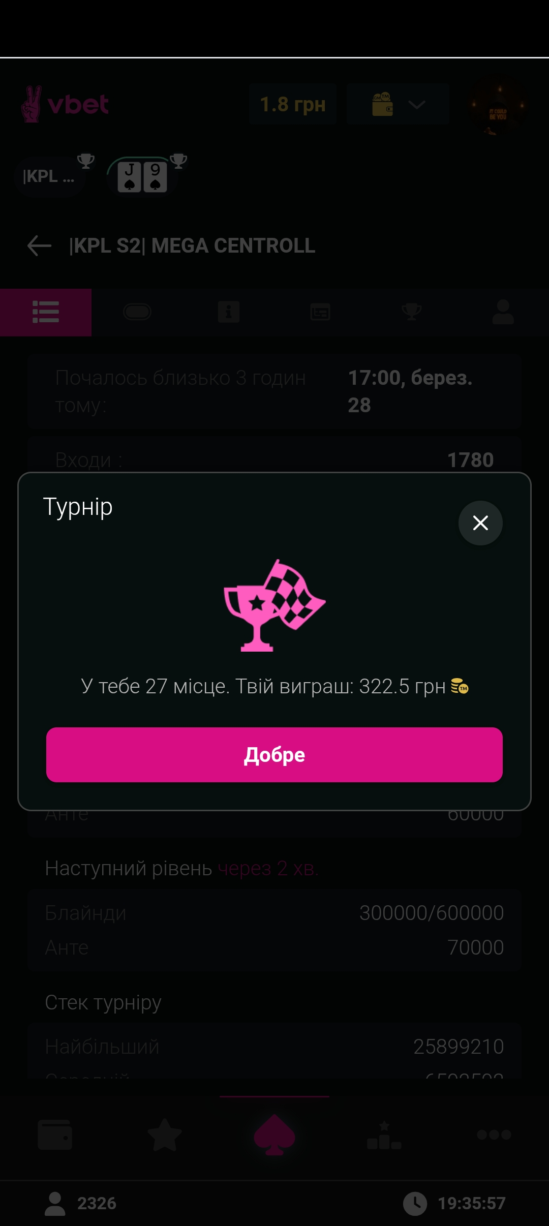 У суботу у нас купа гарних турнірів - 2 на ВБет, гг100к, стейк.