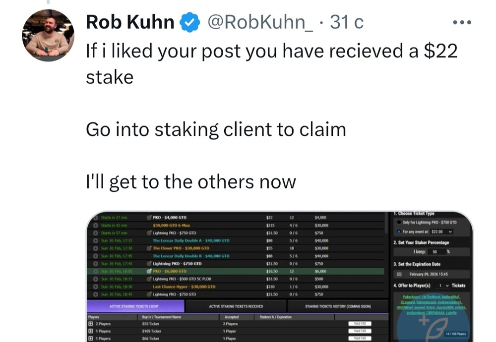 Щойно я виклав блог за минулий тиждень, як Robert Kuhn у Х сповістив, що готовий бекнути гравців на 22$ (50/50). Чому ні?