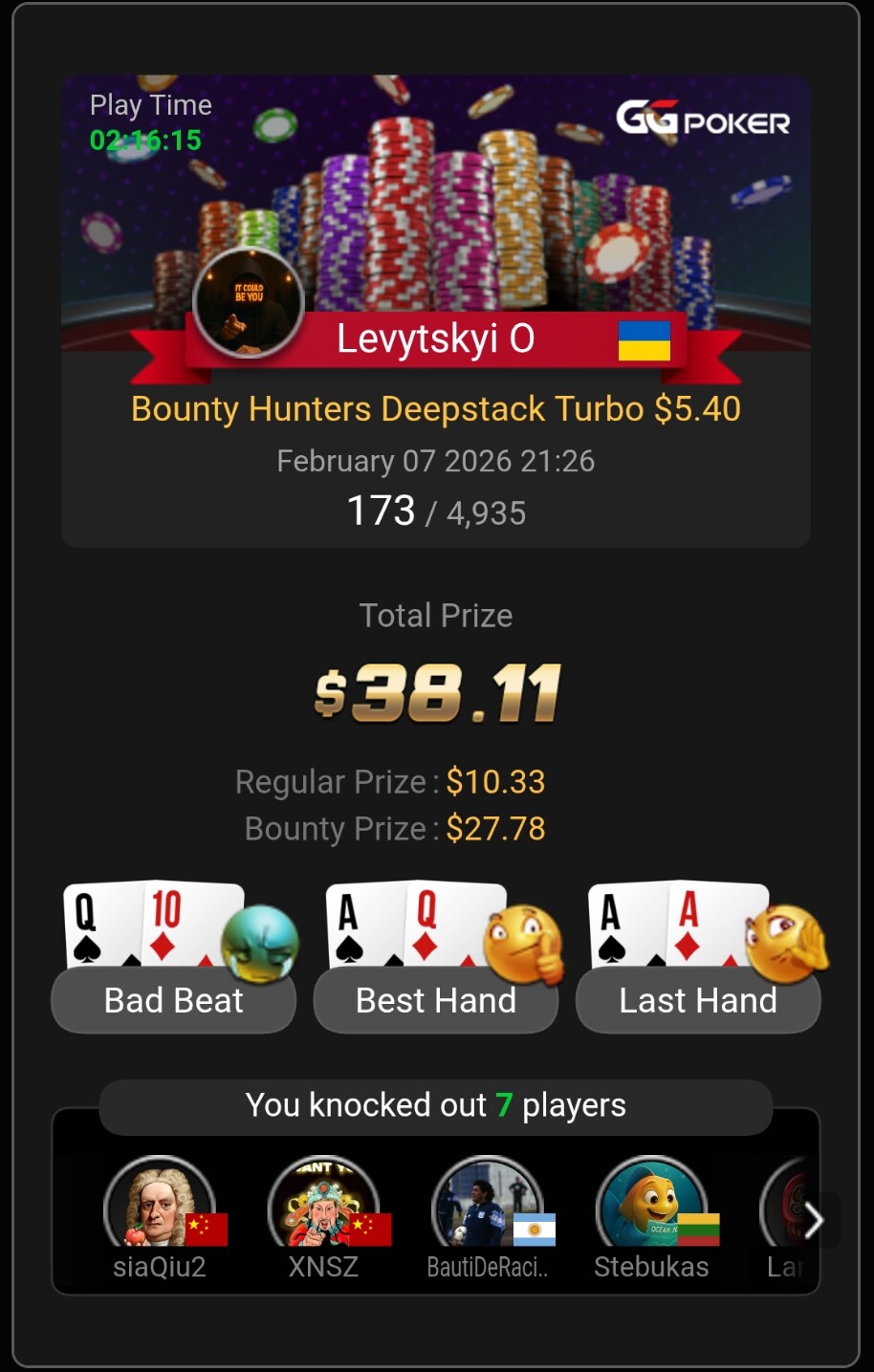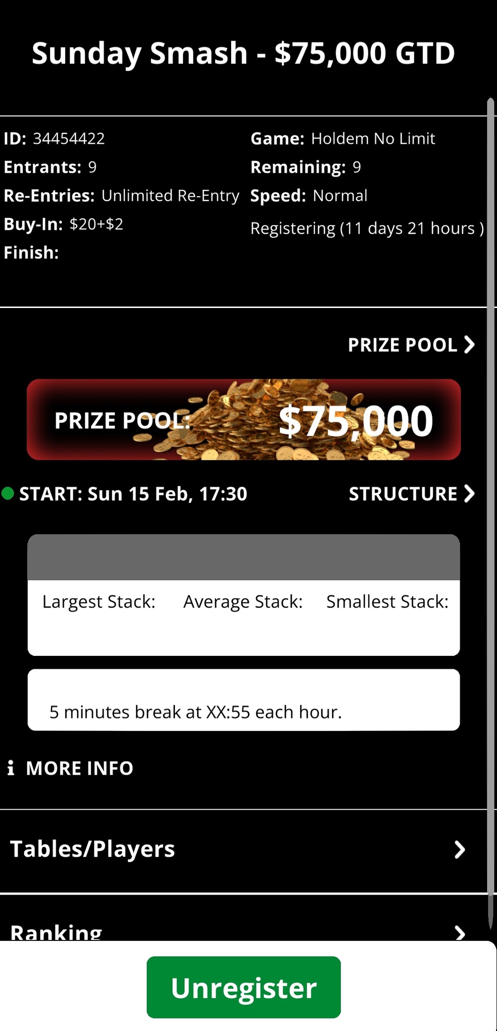 Так що маємо ще один квиток 22$ - пограємо один турнір від "бекінгу". Треба лише обрати те що подобається і підходить по часу.
