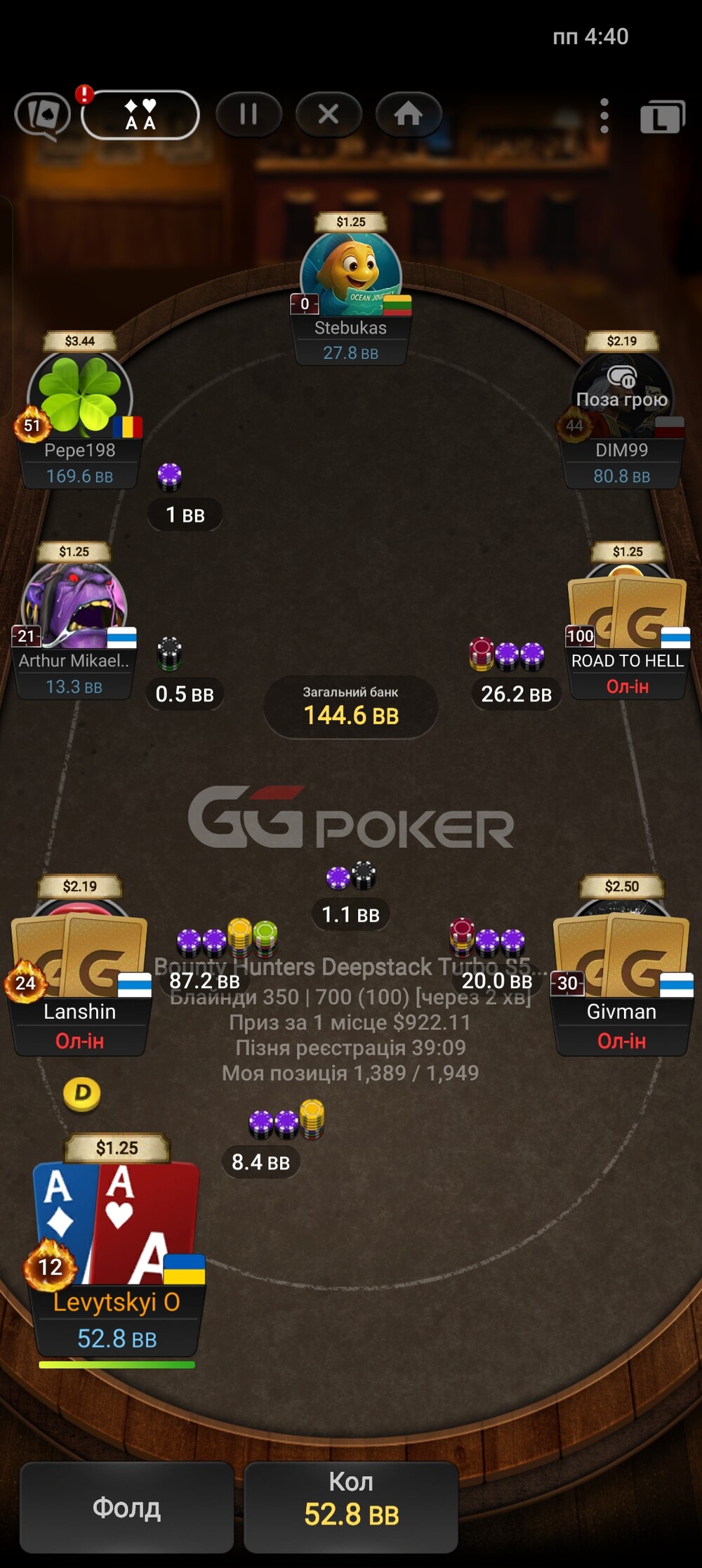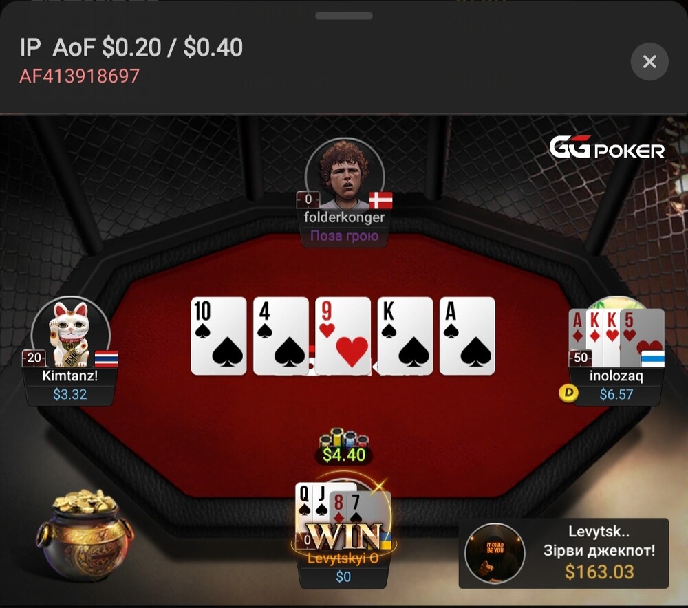 Іноді навіть просто заходив щоб забрати нокаут... Хоча скоріш за все треба було фолдити АВ