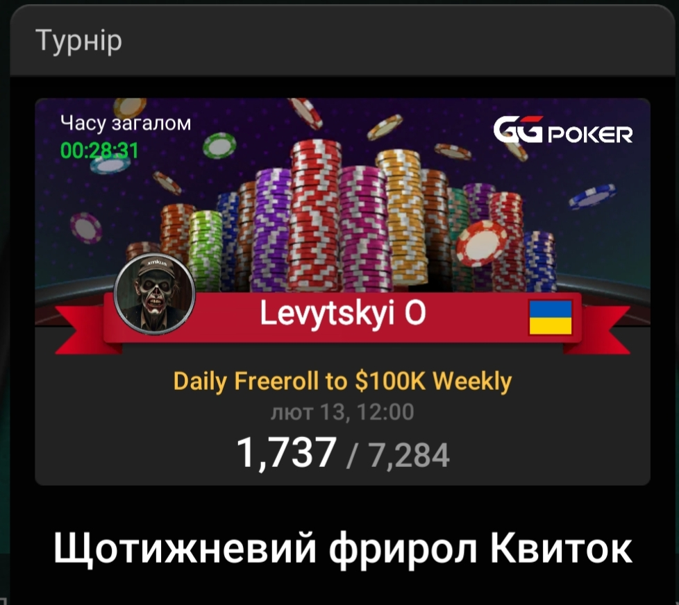 І що виходить з квитком? Нагадаю, що я вже маю реєстрацію у цьому турнірі. Тож мені дали вільний квиток на будь який турнір за 22 бакси - квиток дійсний до 02.2027 тобто на рік.