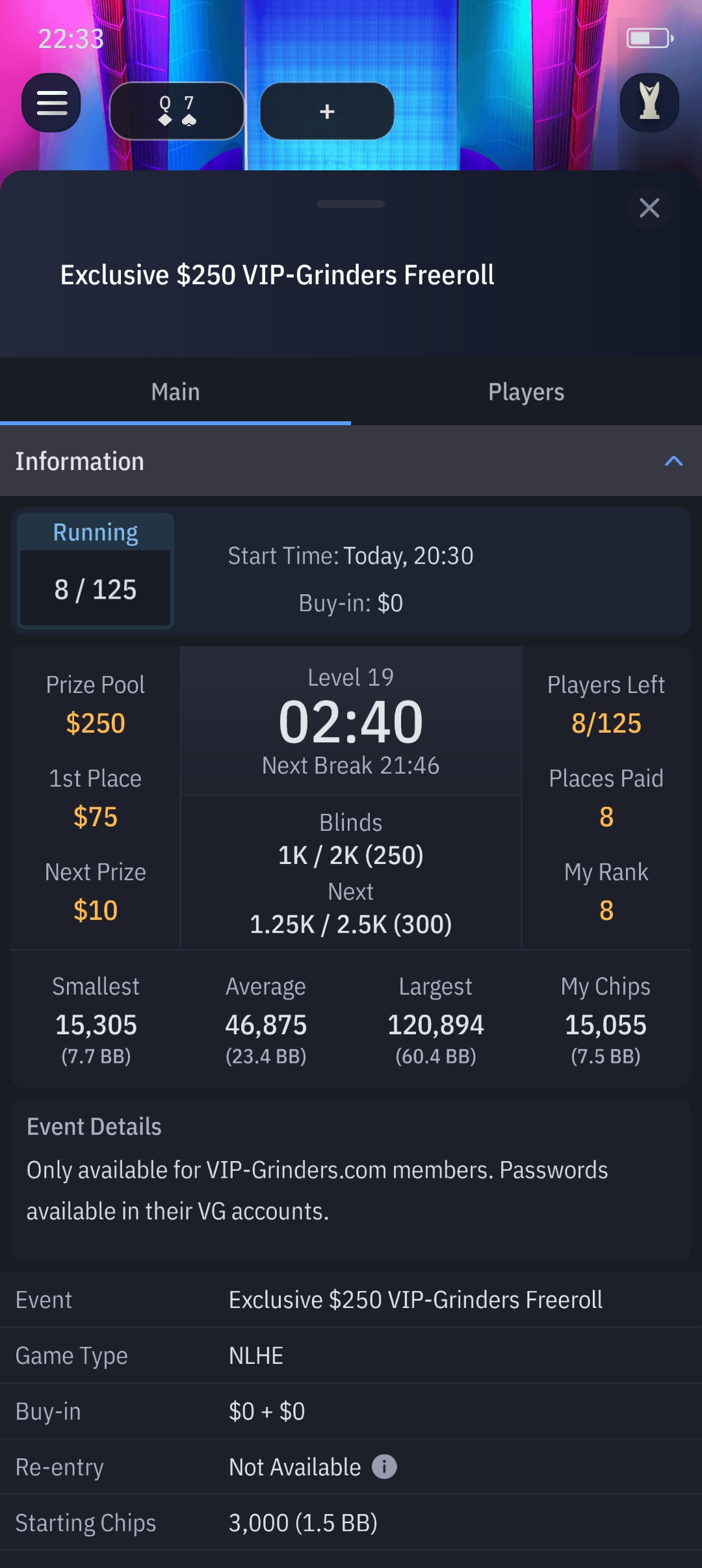 На цьому я планував закінчити гру у неділю, але мені нагадали що можна ще пограти приватний турнір на впт віп-гріндер бо я від них регав акаунт.