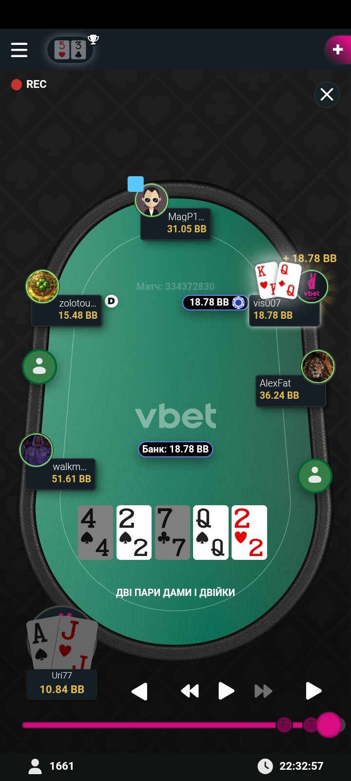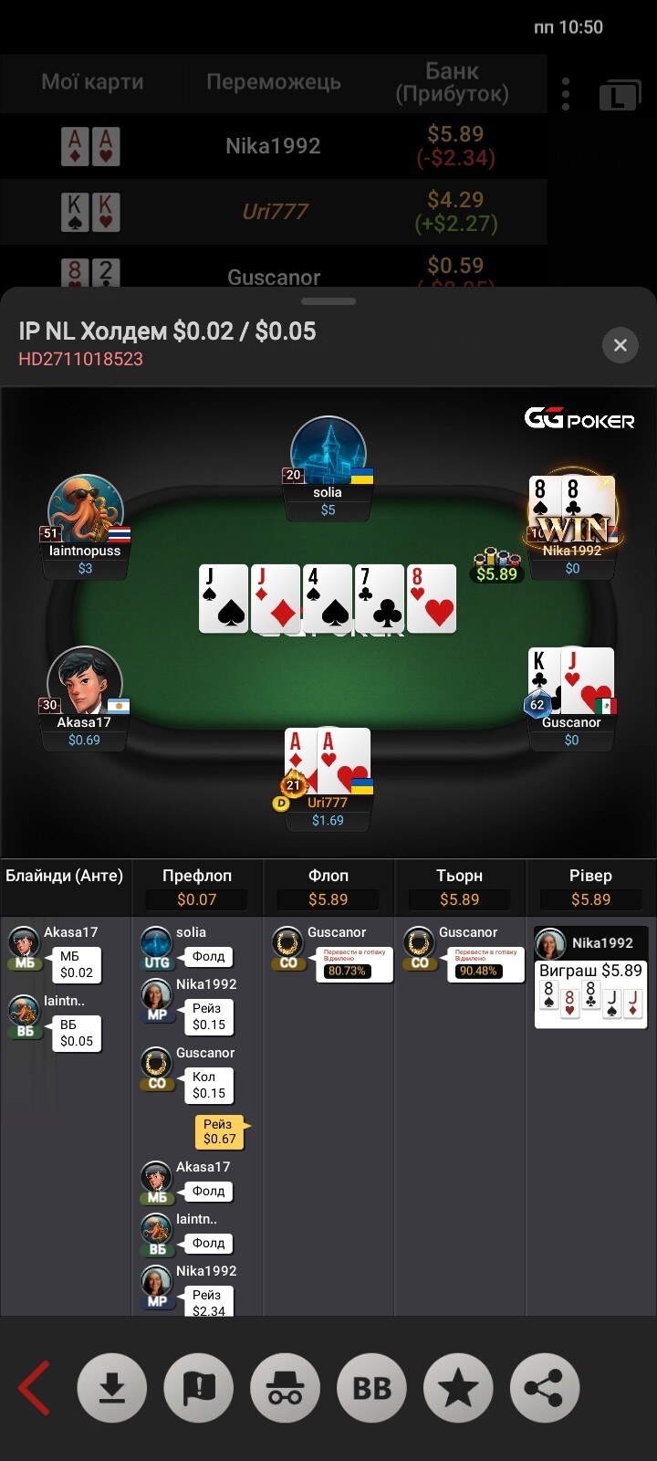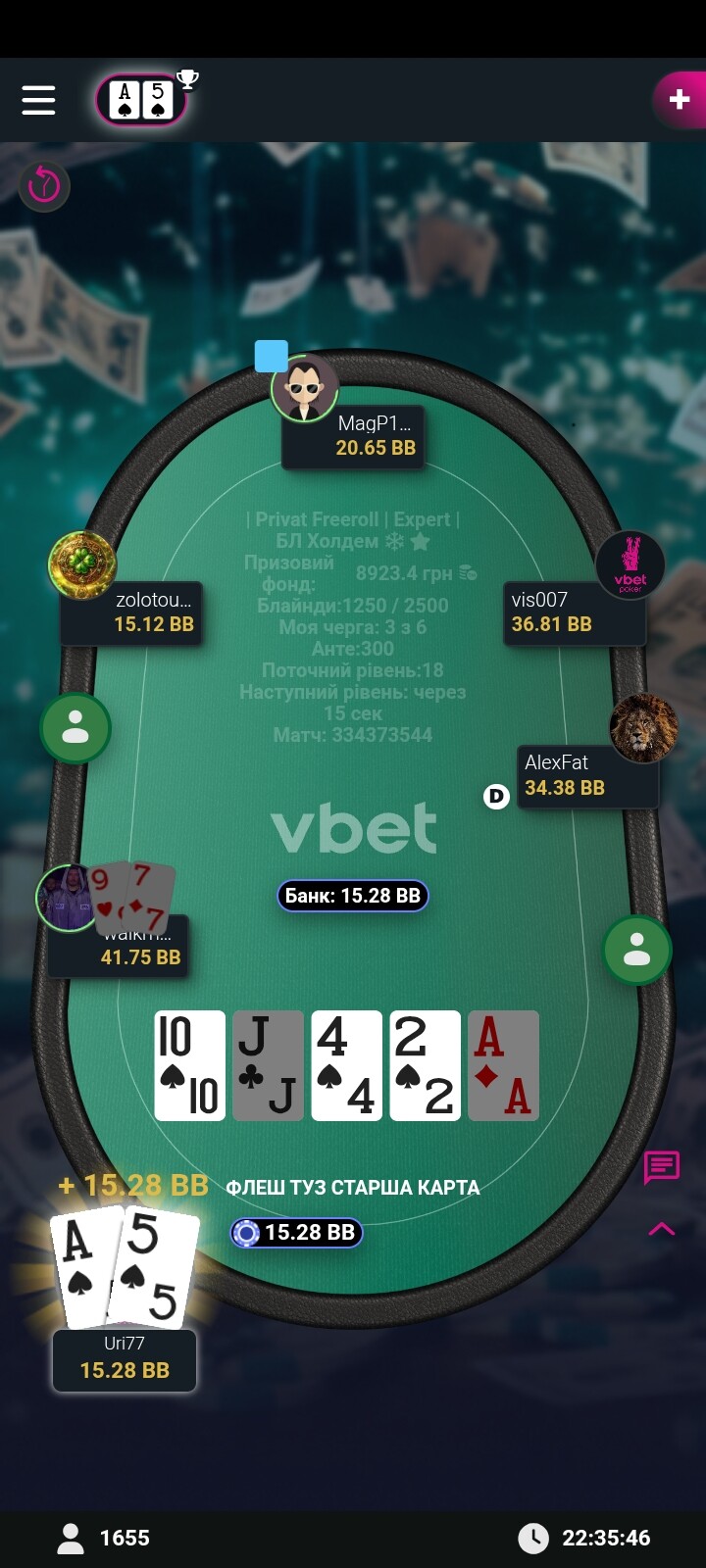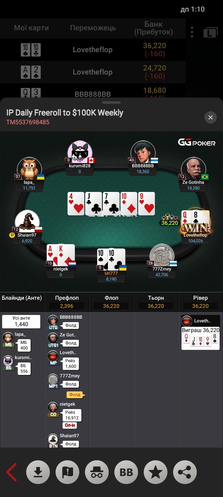 Вітаю з бронзою! Так, якби ти впушив я б точно відкис, але, скорше за все, це мінусовий кол від мене що префлоп, що флоп, просто я виявився більш фартожопим🥶