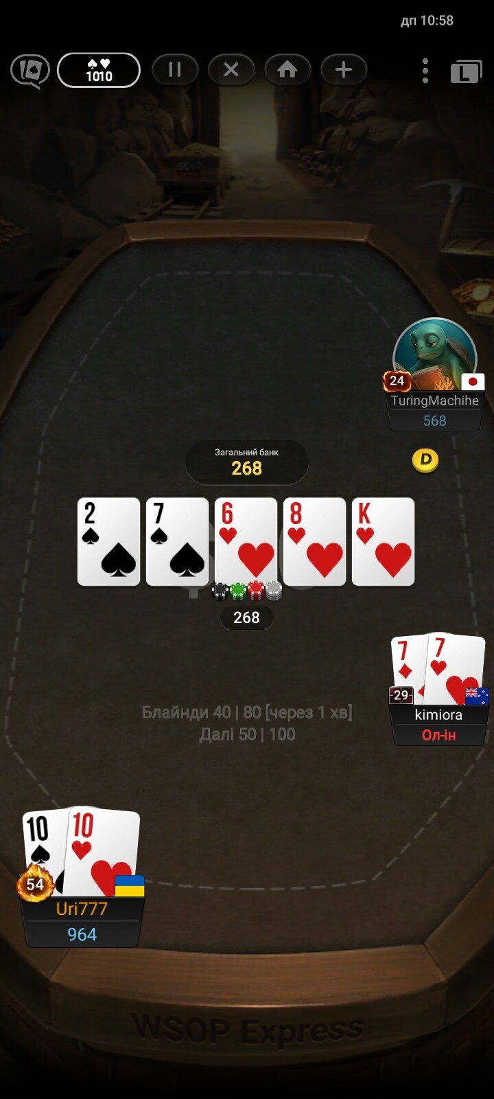 Виставлялись до флопу і от така роздачка. До речі завершилось все за 3 поспіль роздачі як що б вони були не поспіль уваги не звернув би на жаль скрінов не зробив але було сильно особливо після от тієї роздачі