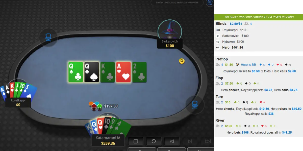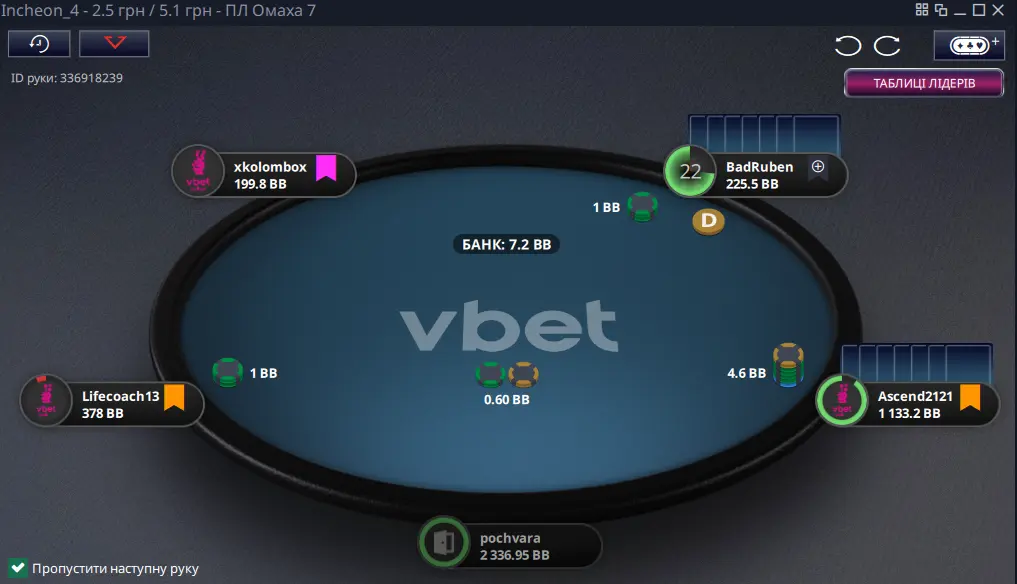 потужний фолд. оп до всього не докупився після цієї і важко зрозуміти, чому він тицнув пас🤷 це був не місклік, бо заюзав таймер.