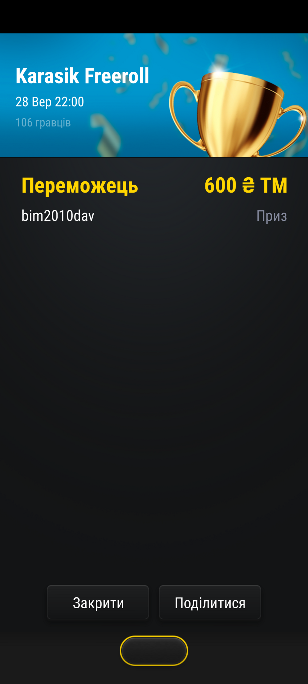 Перше завжди приємно незалежно від нагороди. Плюс один трофей 🏆 Вітаю 🍾