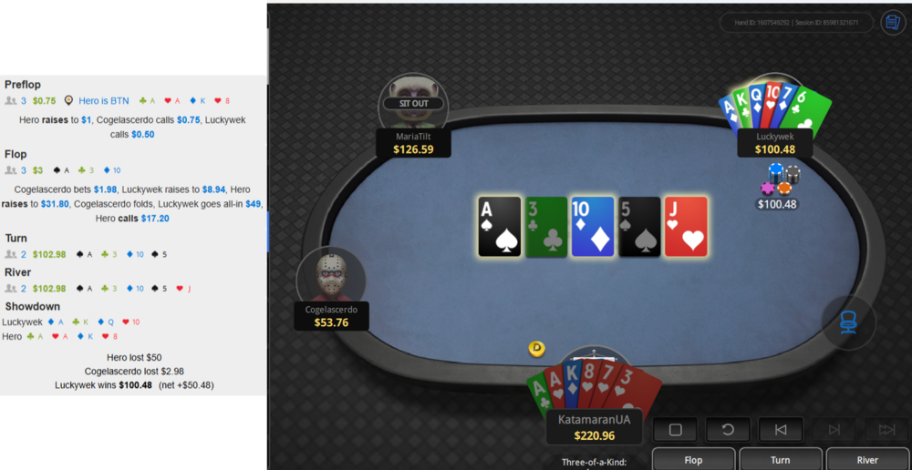хз, може 50 баксів муляли, а може холдемщик чи з пло4 залетів (наче вперше його бачу за столами), де доїздний натс-бекдор зустрічається рідше. але тут наче нема причин перекручувати в аі з хріновим флешем.