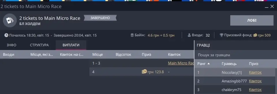 Давно так мені не заходило. За декілька роздач, я заробив стек з яким потім досидів до фіналки і отримав квиток