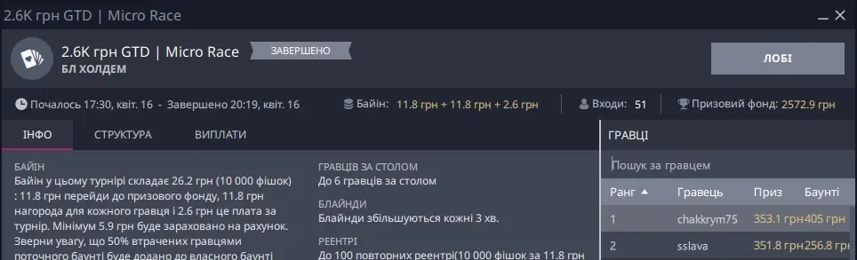 Десь кожний четвертий турнір я потрапляю в ІТМ. Не знаю гарно це чи недостатньо. По коштам маю більше ніж вкладаю.