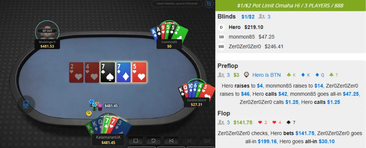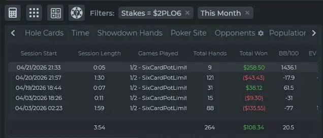 далі сидіти зі стеком ~150bb не на своєму ліміті хай і з приємним опом, але з +трьома регами стало не надто цікаво, тож знявся.
