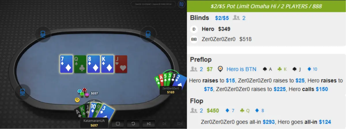 кинув роздачі з найбільшими потами і може здатися, шо гравець агресивний, але це не зовсім так.