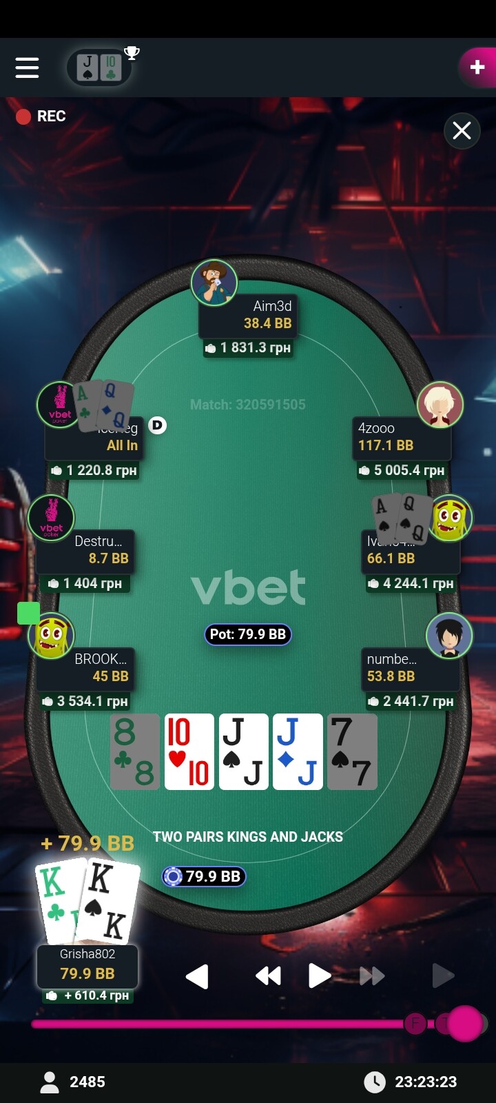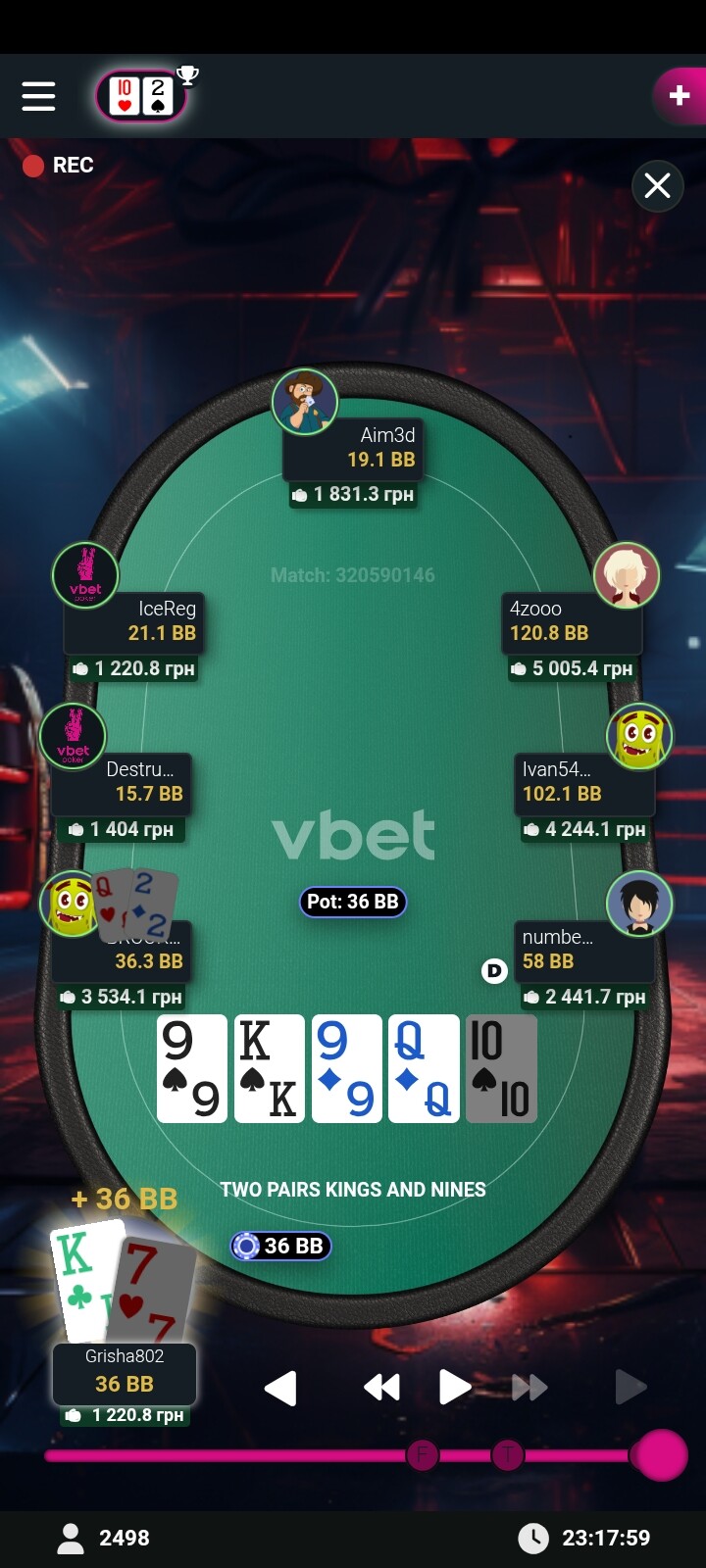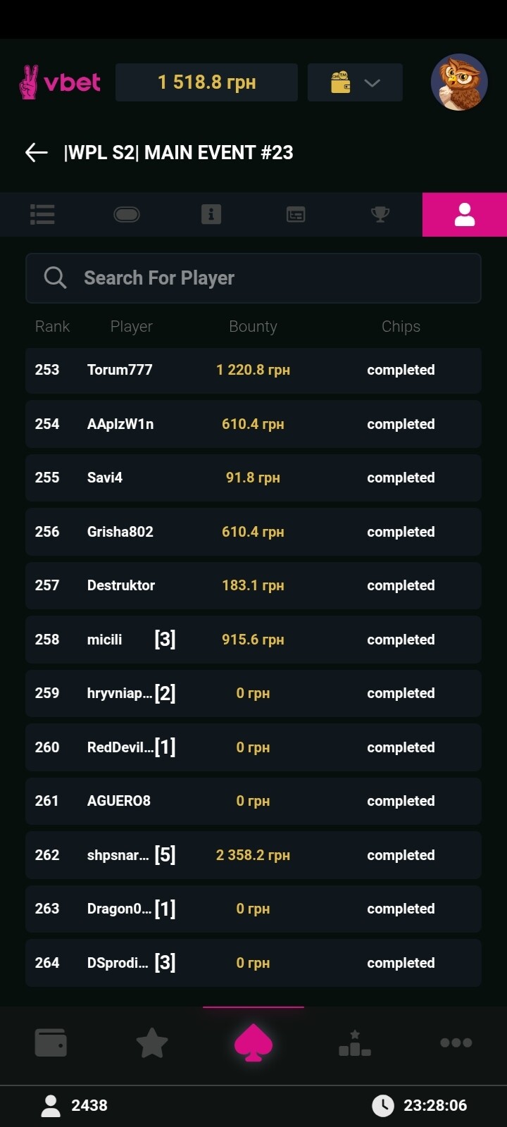 Після цього Я посідаю 67 позицію із 270 гравців.Стек 80 бб.робочий Призи 100.Ці всі події відбулися в дуже короткий проміжок часу.