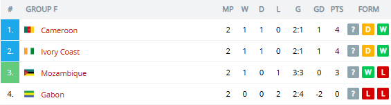 Камеруну достатньо не програти, щоб спокійно вийти. Мозамбік після сенсаційної перемоги 3:2 з Габоном має реальний шанс стати відкриттям турніру і потіснити когось із фаворитів з другого місця.