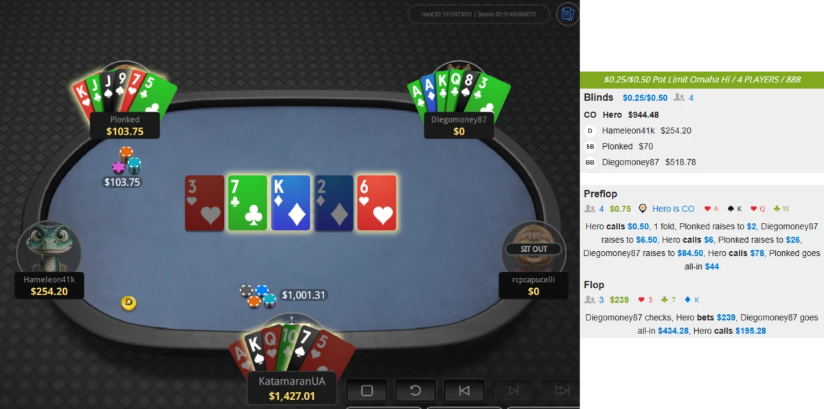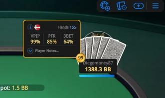 інша справа рег зліва. це адекватний і спокійний гравець. не сумнівався, шо в руці не просто стріт, а ще й до стріта сет/фд/9Т. або ж і без готового стріта сильне мультидро проти якого мені треба помолитися всім покерним богам аби вистояти.