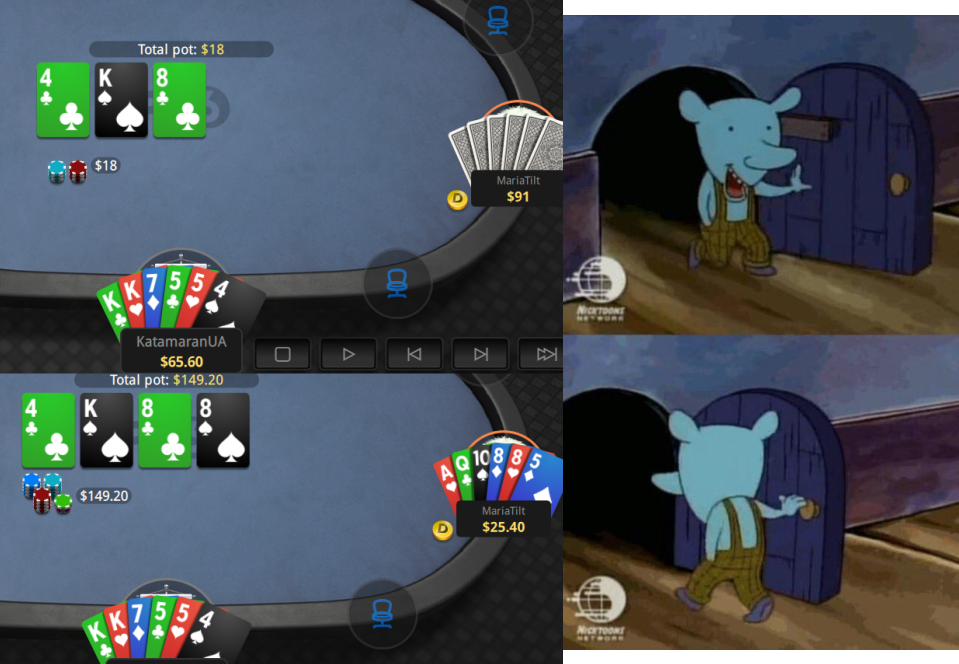 вибив на іміджі🤷можу впевнено сказати, шо такий трюк він зі мною може робити системно просто тому, шо 9/10 інших рук будуть саме такі, як описав вище. тобто мені самому тут треба +шось (згадані сет/фд/9Т) аби виставлятися. голого стріта з кволими блокерами на флеш малувато.