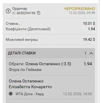 ще брав остапенко перемогу позавчора (зіграла) і її ж знову з форою на матч, який якраз зараз грається.