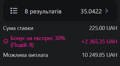 Тепер розпишу деталі даного експресу з 8-ми матчів: