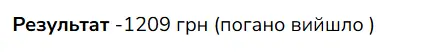 Результат -1209 грн (погано вийшло )