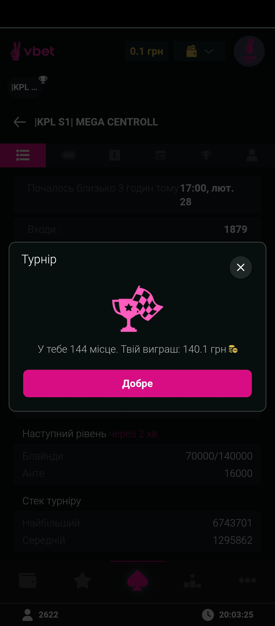 28 лютого грала на V bet. (Мені дуже подобається там грати. Вони мають ліцензію і з виграшу ти сплачуєшь податки у нашу державу.)