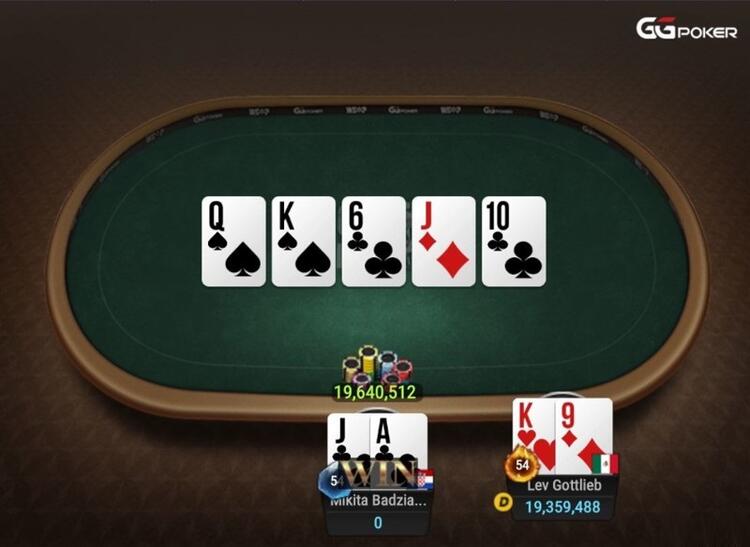 Незважаючи на посилення позиції, білорус не зміг завоювати заповітний трофей. В останній роздачі турніру Микита K ♦ Q ♠ заколіровал префлоп-олл-ін Готтліба з A ♠ 10 ♣. На стіл поклали 7 ♦ K ♣ J ♣ Q ♥ 6 ♦, які по терну принесли мексиканцю стріт.