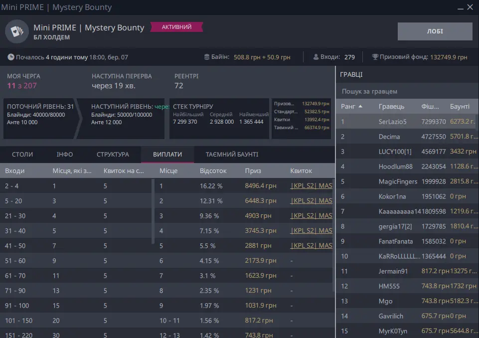 Мені дуже подабаються на ВБЕТі турніри до МІНІ подій, де вхід становить +-550 грн. Вони починаються о 18:00. До призів я не часто доходжу, але періодично нокаутами набиваю Х2 від стартового, а то й більше.