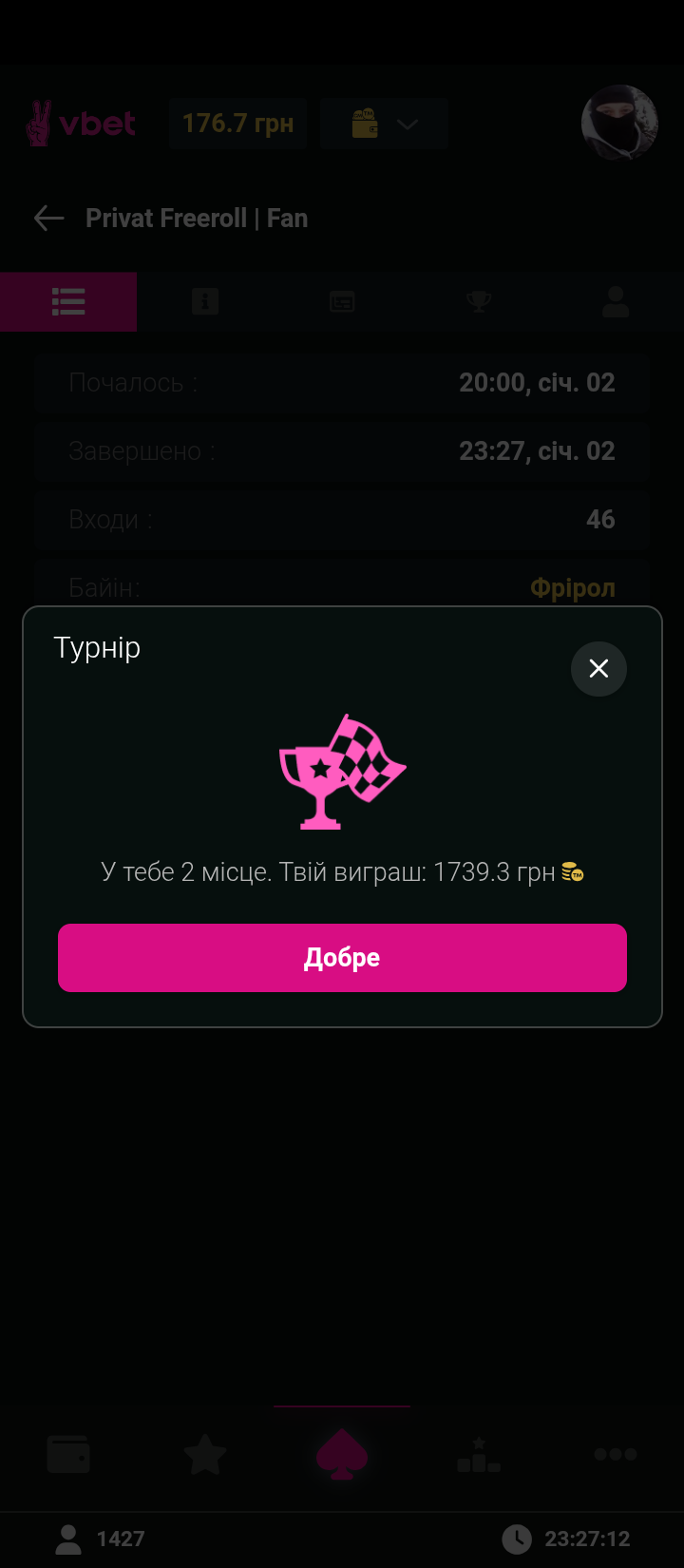 А я радий і другому місцю)Всі гравці грали достойно.. Кому не пощастило,не сумуйте.Наступного разу пощастить!Додаю пруф фінальної роздачі..був поруч
