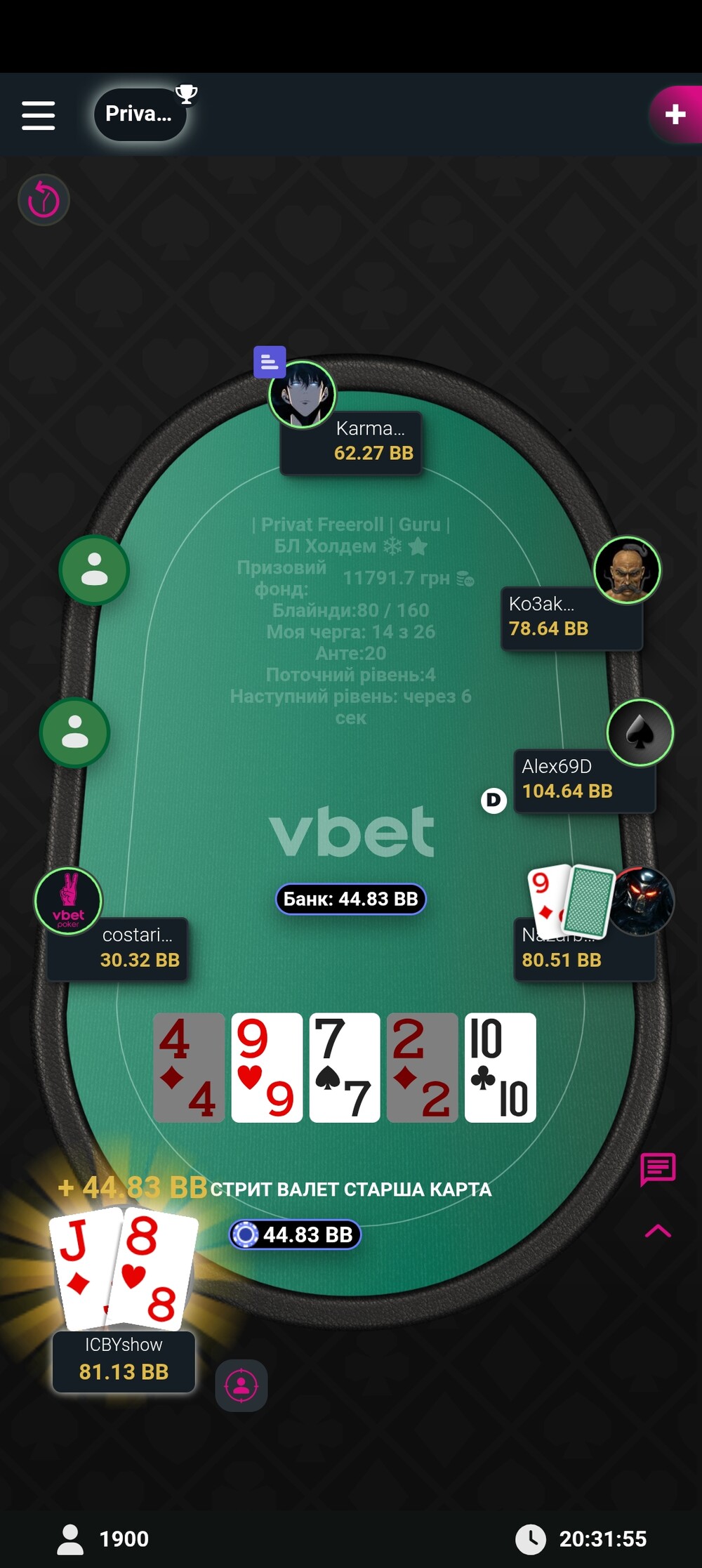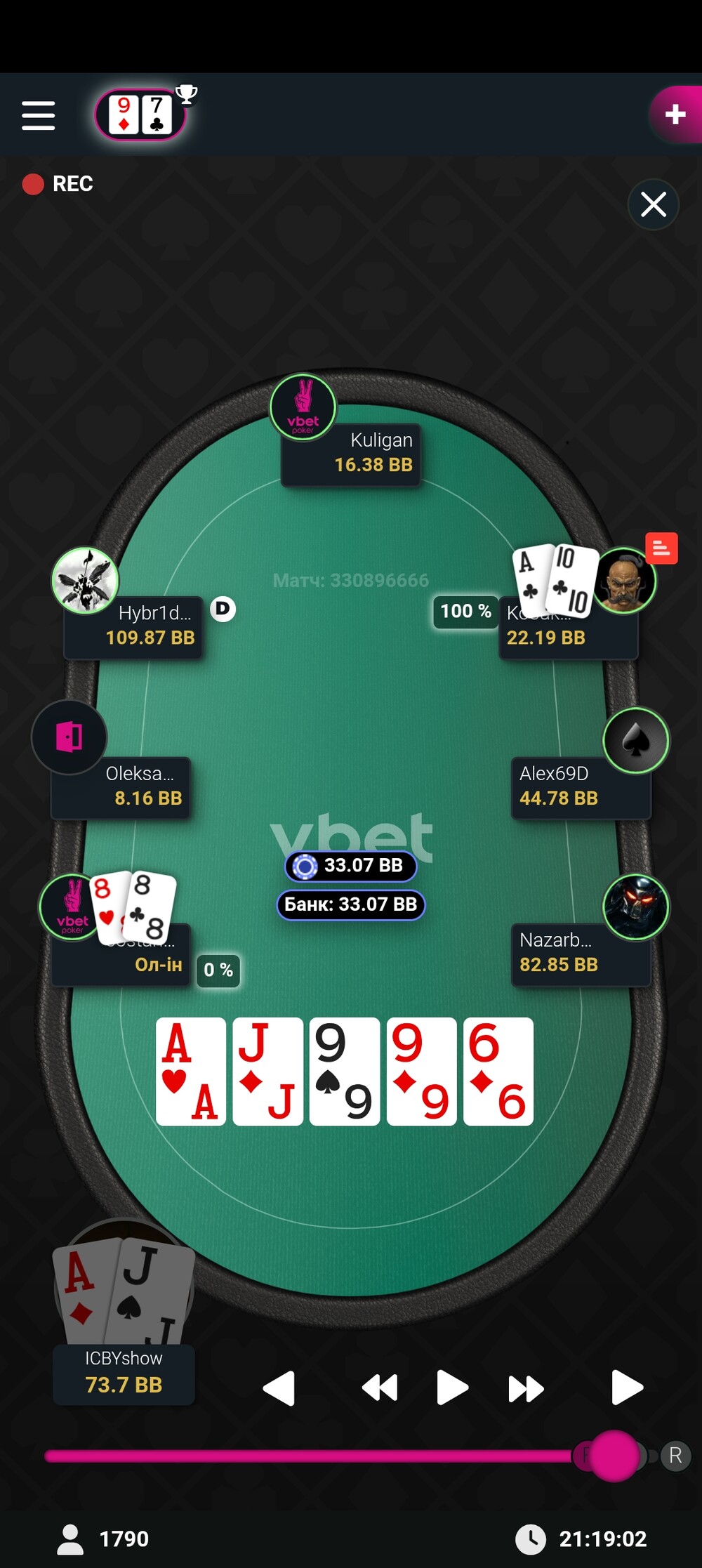 И ось роздача з АВ яка змінила все для мене, я викинув на два Ол-ін і випав борд, де я мав забирати обоих. Але ж я вважаю що прийняв правильне рішення викидать, хоч і прикро)