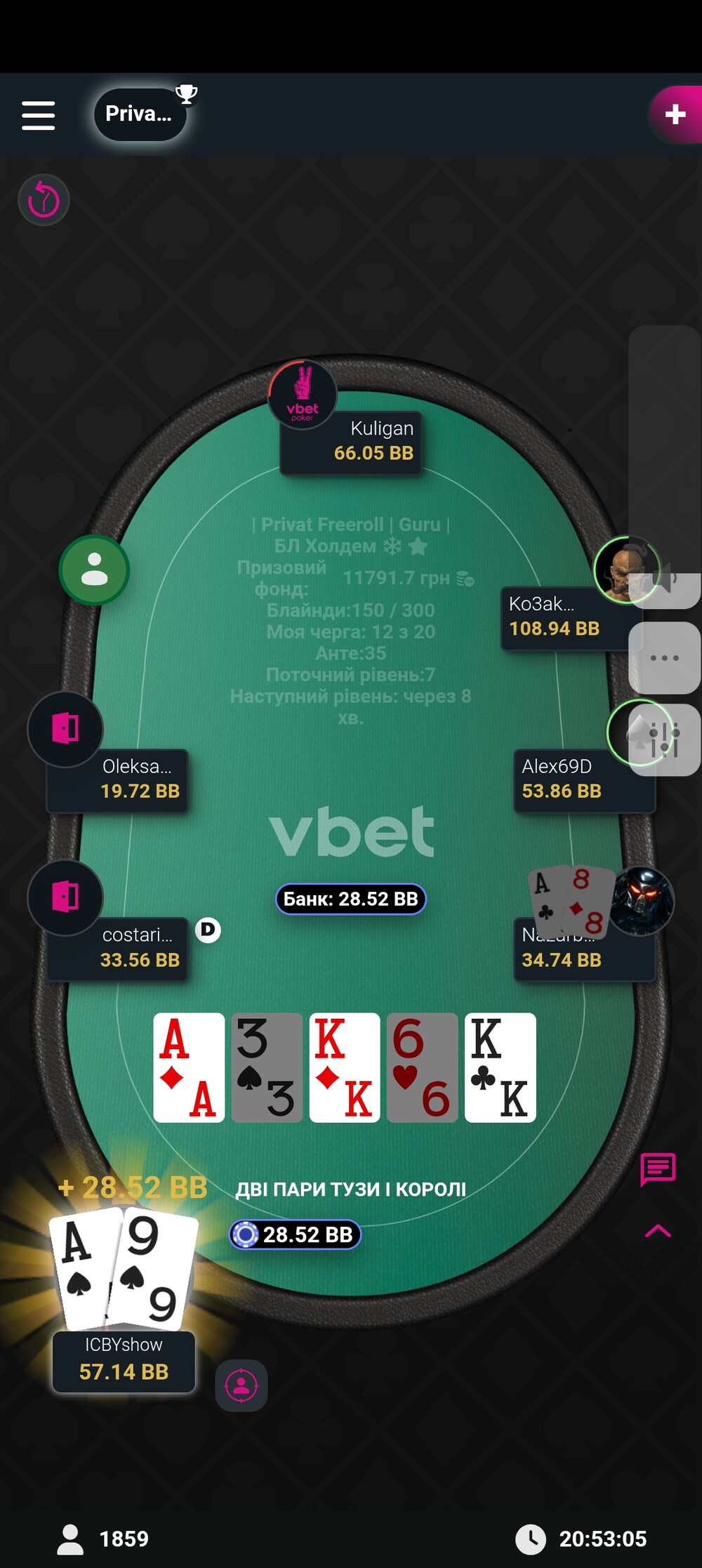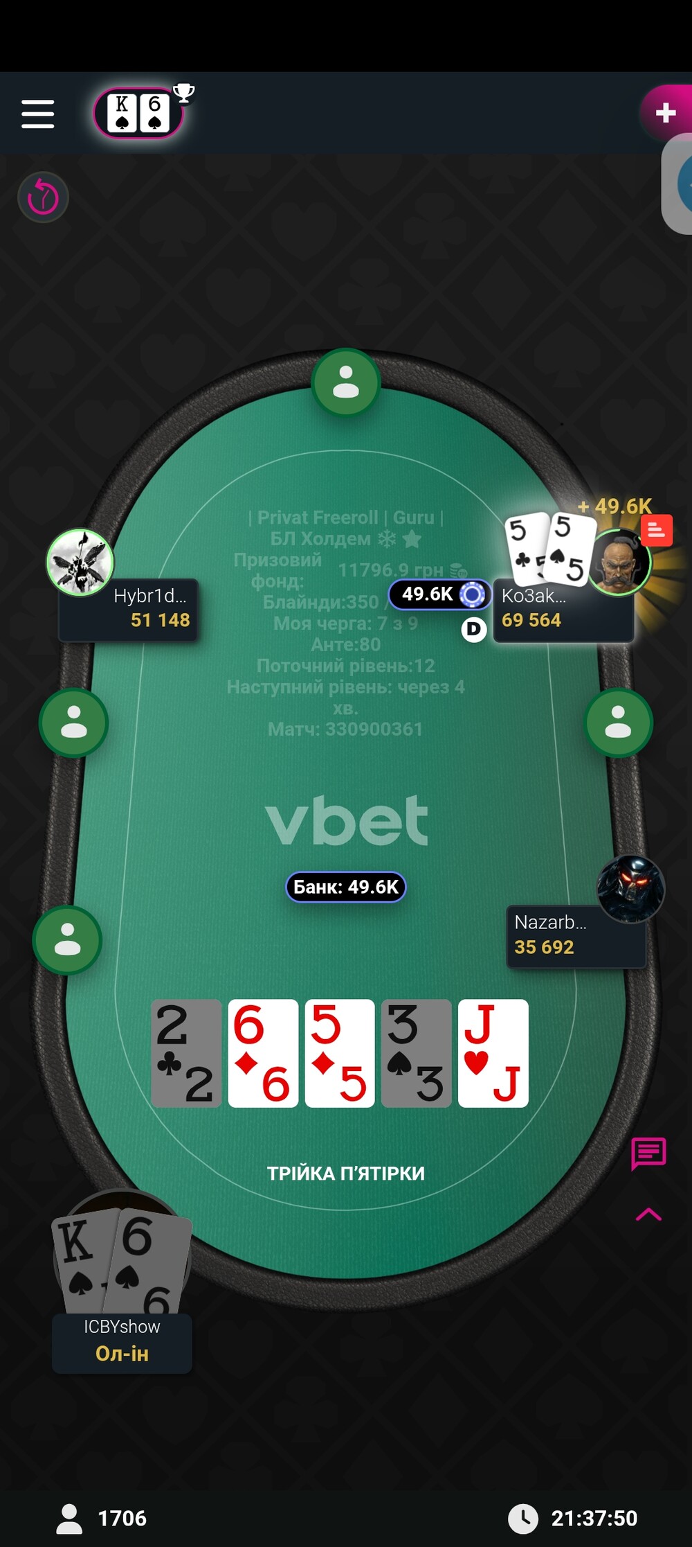 Сподобалась гра у новому статусі "Гуру". Трошечки про турнір, і про те, як я відпустив гру ) одна роздача змінила хід турніру для мене)
