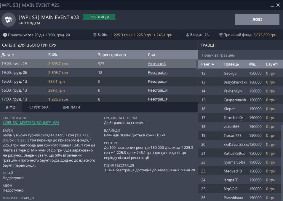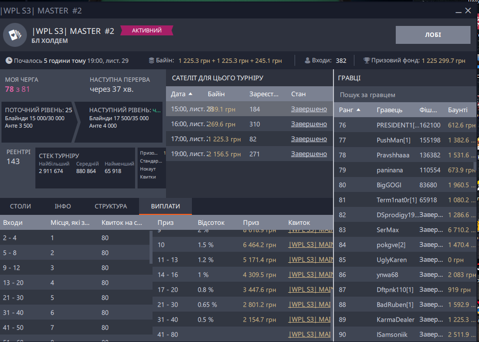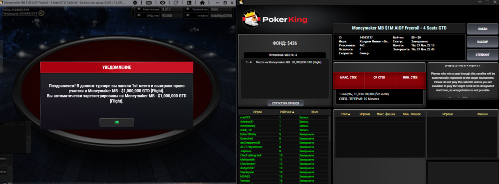 Виграв за цей місяць три квитка на турніри за 2600 (Master, Prime, Main Event) і всі три постріли навіть без жодного нокауту, жесть як не заходило. Ну хоч в інших турнірах нормально нажив)