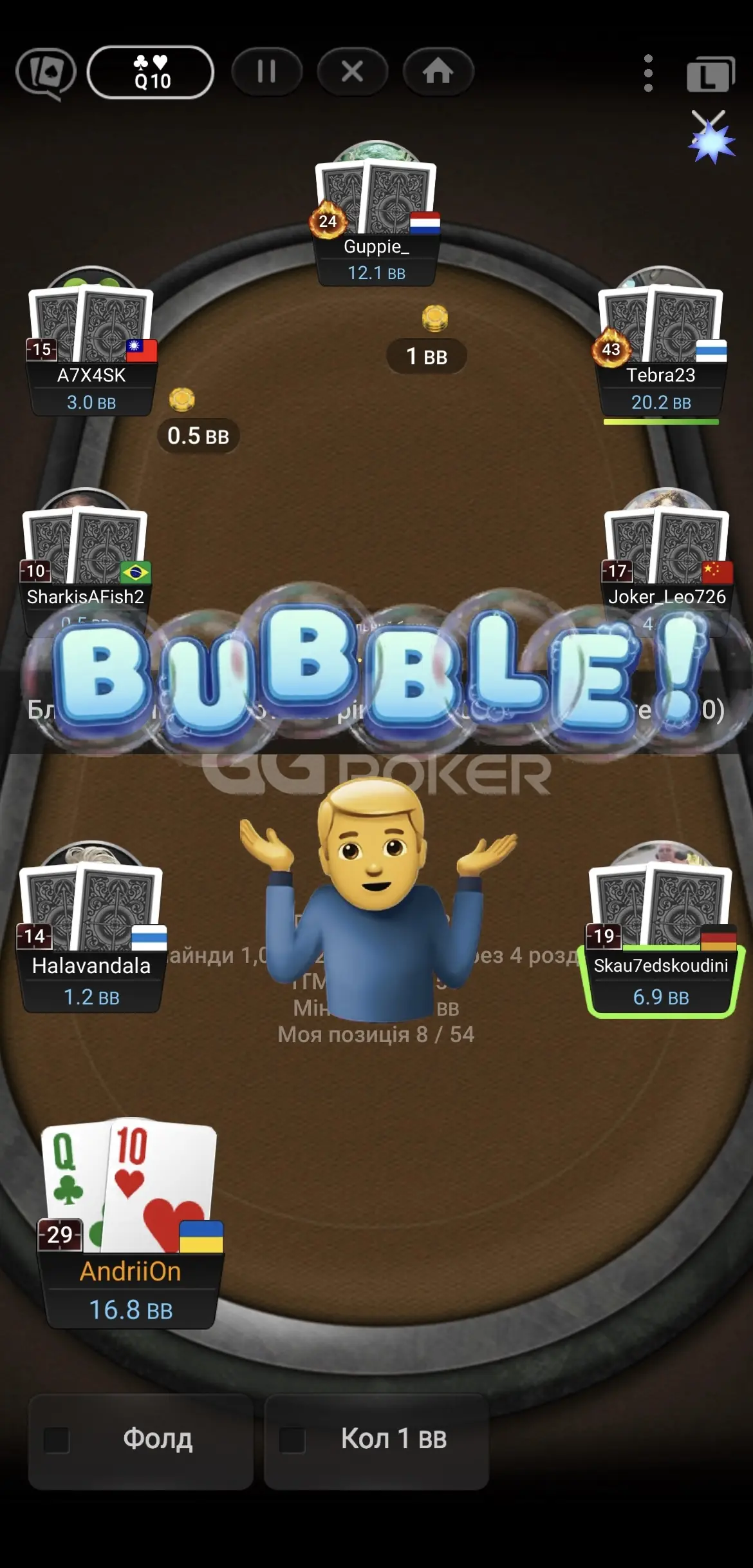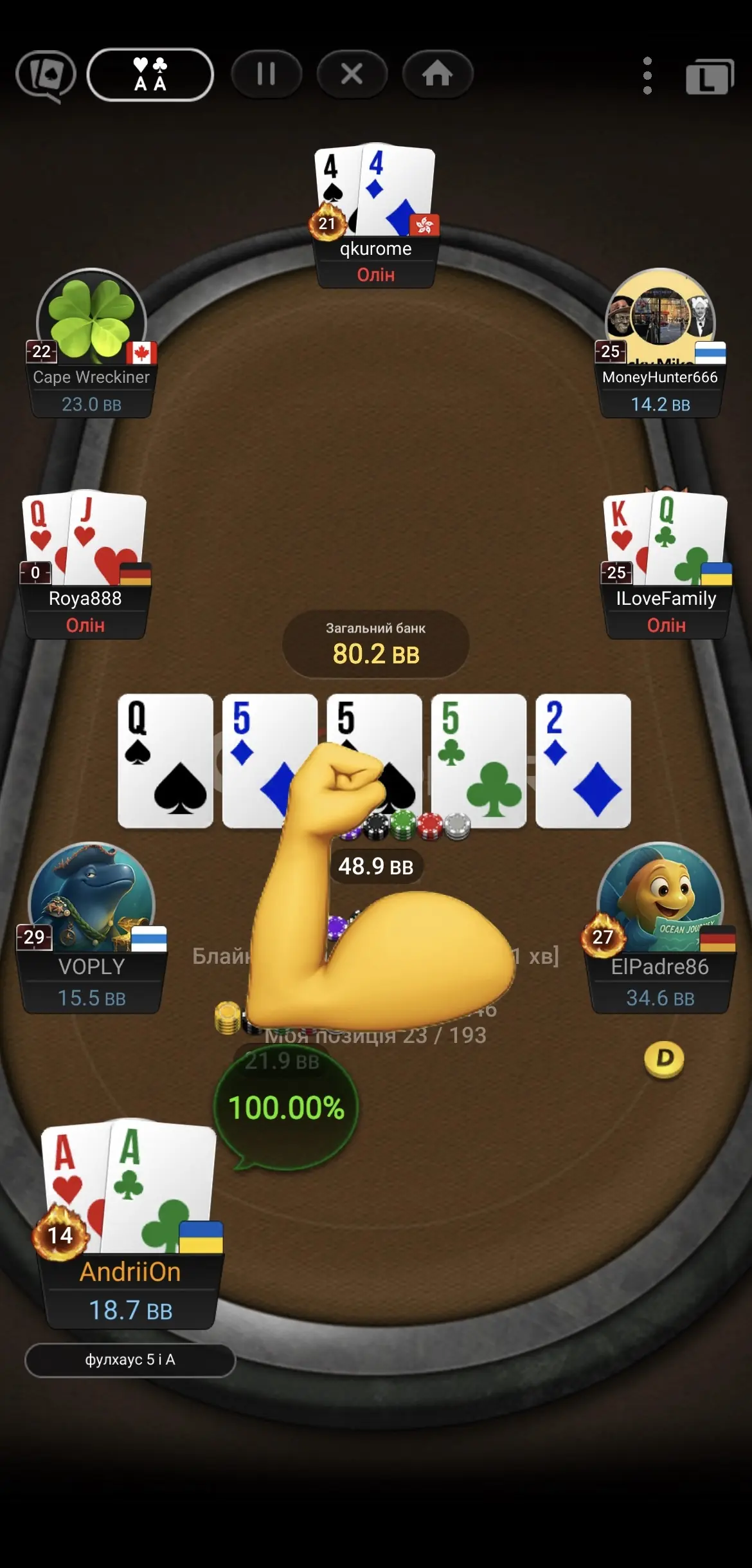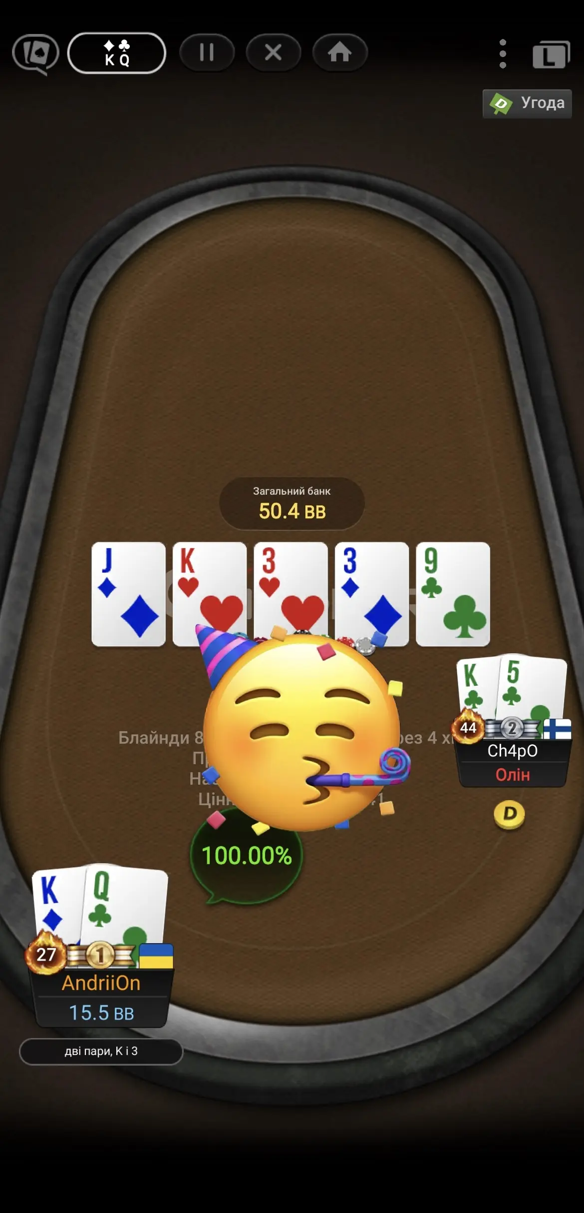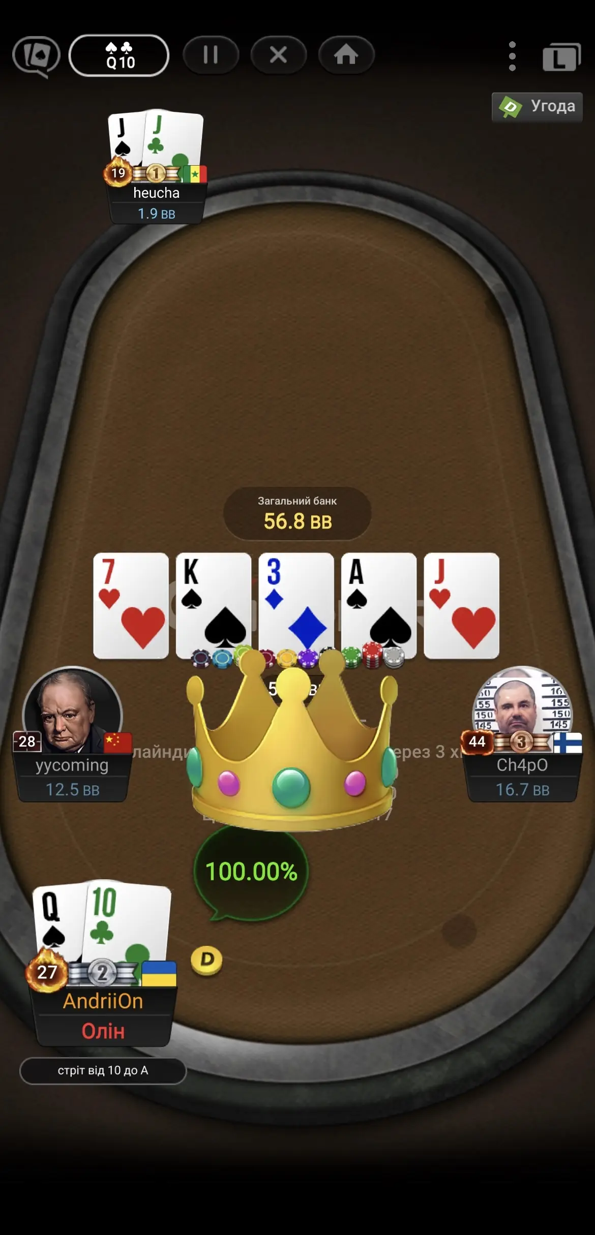 Роздачі як роздачі, напрягати скрінами не буду. Покажу тільки хід цих неймовірних подій 😎