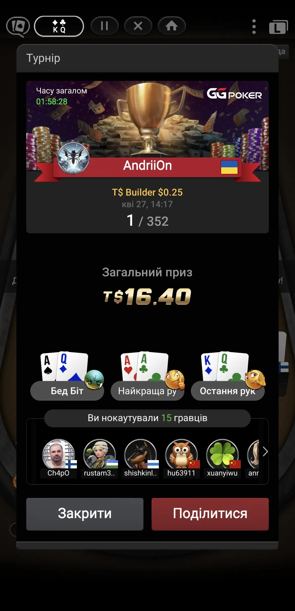 А тепер скажіть чи дочитали б ви до цього моменту якби на першому скріні побачили що це турнір за 0,25$ ? 😁😁😁