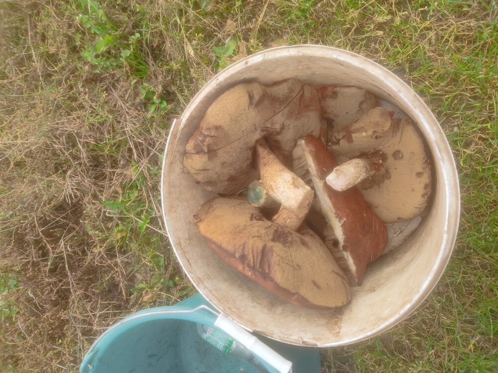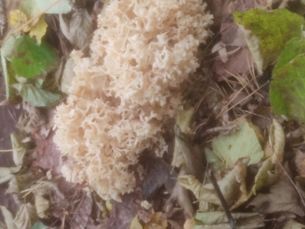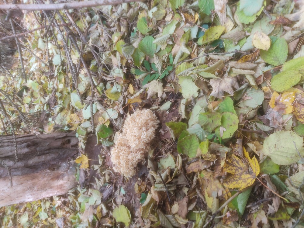 Біла губка - спарасис кучерявий, Червона книга України, тому й на землі а не у відрі ( але їстівні і дуже смачні))) А за чорні зараз пошукаю бо точно не пам'ятаю назви ( не їстівні), так для краси, для фото. Треба було ще "пальці мерця" сфоткати)))