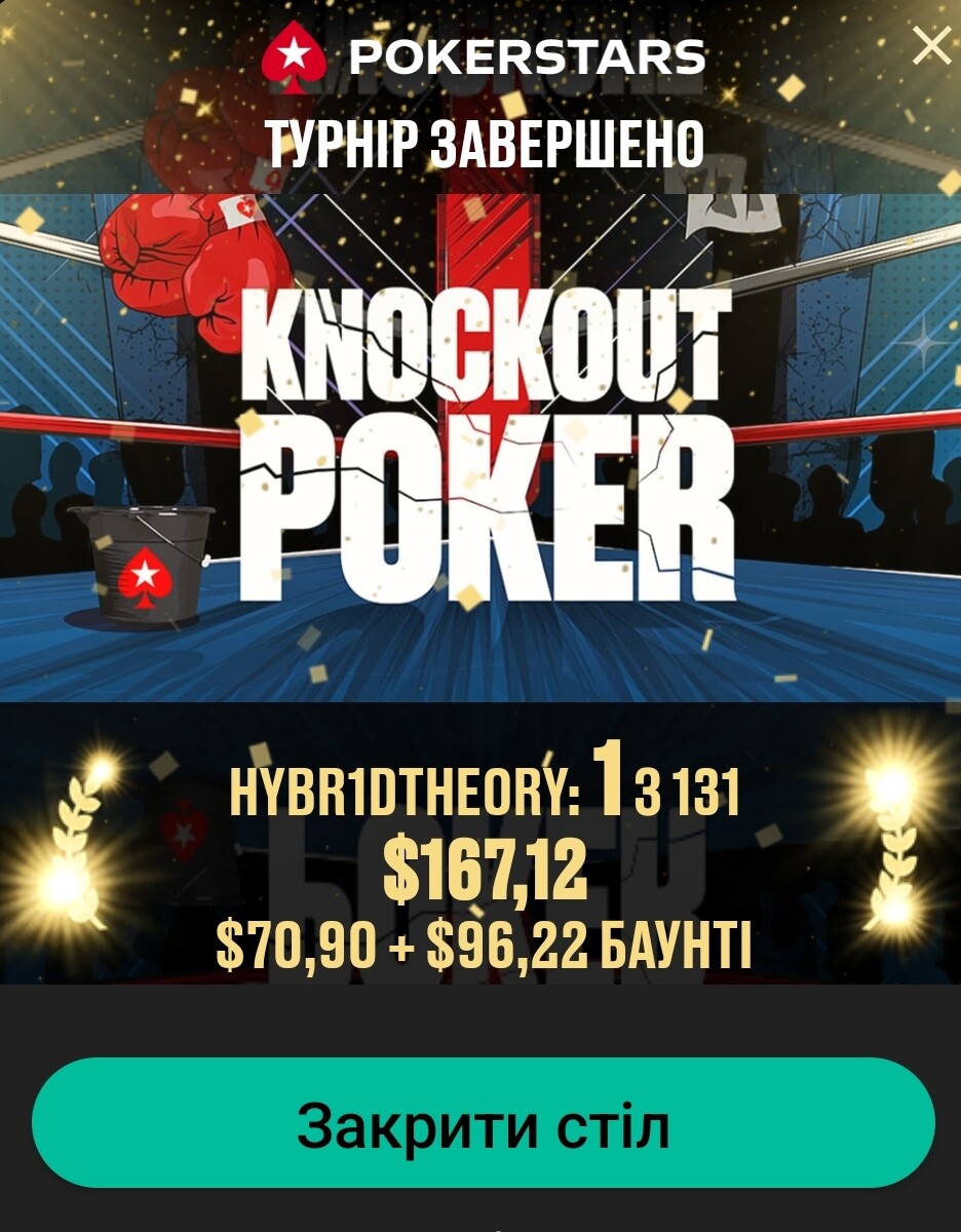Дякую!) Вчора на цій фіналці в топ 7 щось від'їхав (стояв в черзі в АТБ і грав з телефону😁) і зіграв 4-бет кол з валетами на 30 ВБ, поїхав звісно погано, проти QQ, але який же кайф був побачити валета на рівері)) Віддало за всю біль на GG)