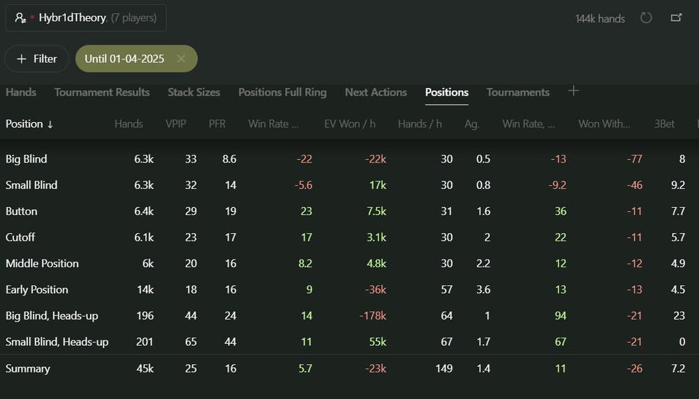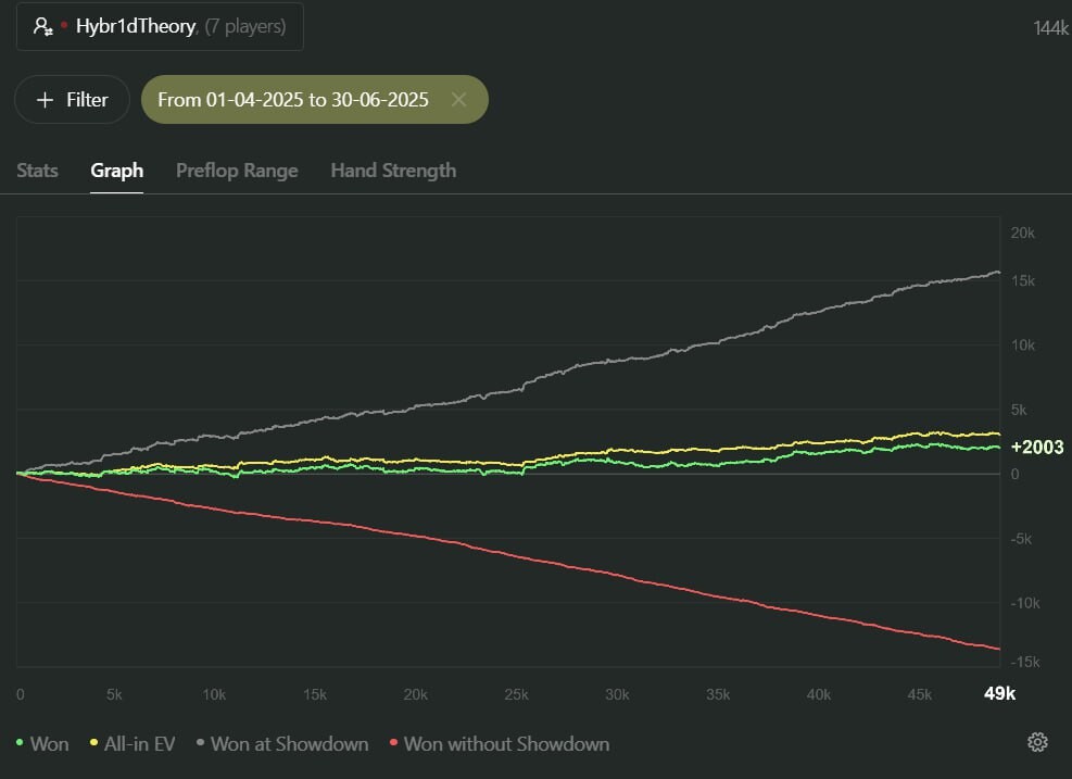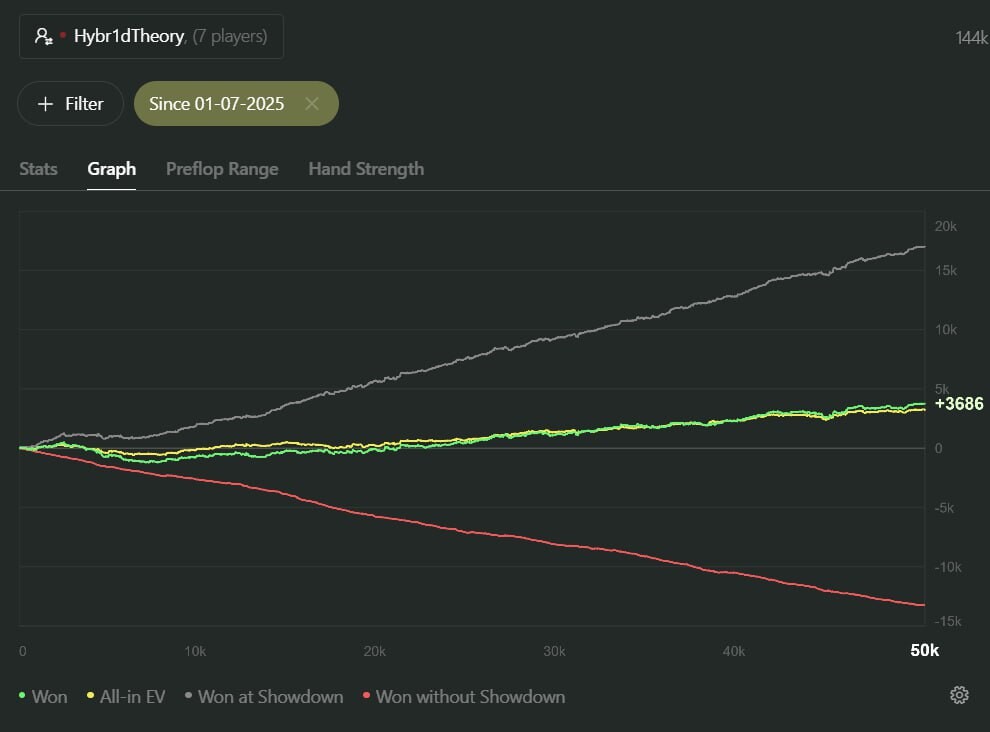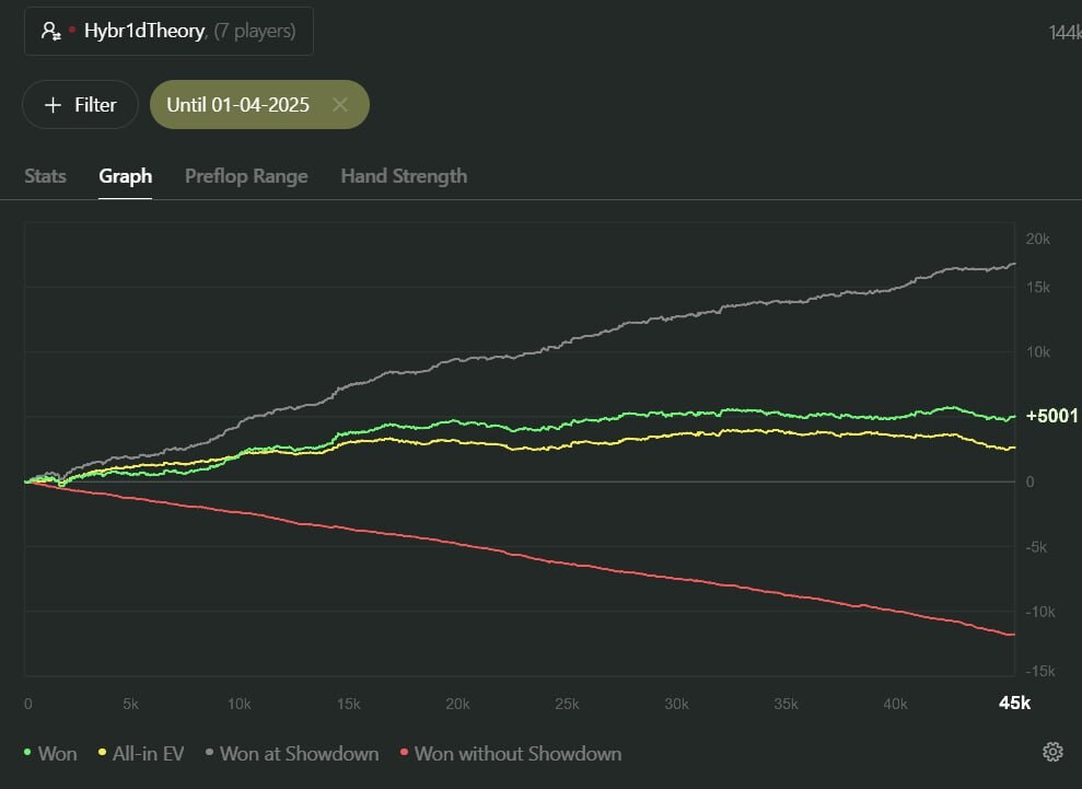 Вже потроху починаю дрейфувати в сторону АВІ 10 і до кінця 2025 року хочу закріпитися там. Мета ж на наступні пів року - рік це АВІ 20. Для себе я визначив цей ліміт як оптимальний в плані можливості заробляти за умови гри як хоббі гравець, а не як профі. Я не планую якогось мега швидкого бусту саме тому, що покер для мене це хоббі, я не витрачаю на роботу над грою стільки часу, скільки потрібно для професійного гравця. Але мене це влаштовує, бо це не джерело заробітку в першу чергу, а улюблена гра і пристрасть😍.