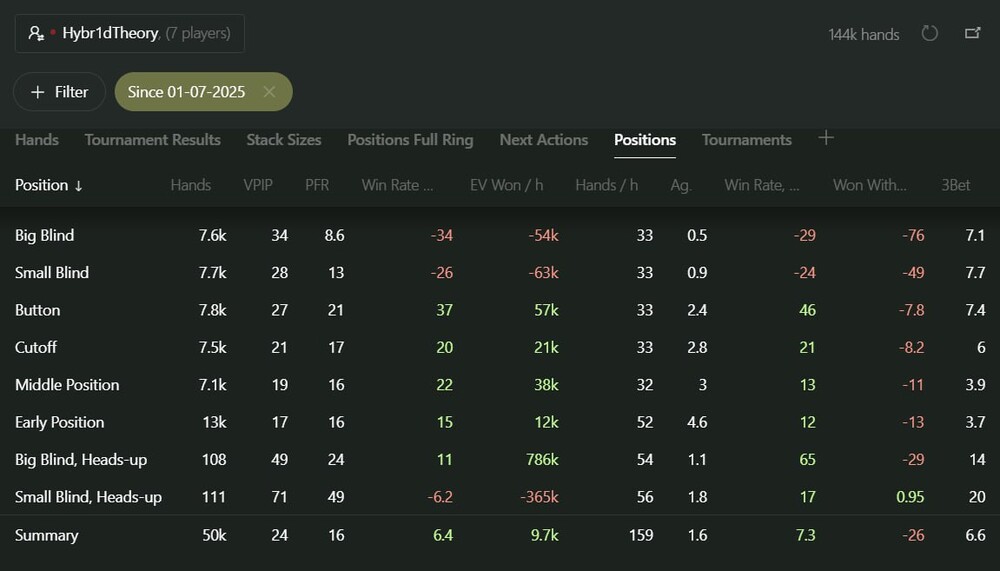 Дякую! Так, саме це і буде наступним кроком у роботі над грою, бо "так багато питань і так мало відповідей"😁. Я наприклад завжди дивувався чому завжди радять відкривати і трибетити більше з СО і BU і нічого не кажуть про постфлоп, ніби це якийсь чарівний засіб підвищити вінрейт. Спробував пару місяців тому, просто "механічно" розширив ренджі з батона, нічого не змінюючи глобально в постфлоп грі. І такі да, це і є чарівний засіб підвищити вінрейт😉 Якби попрацював з тренером, то зробив би це набагато раніше)