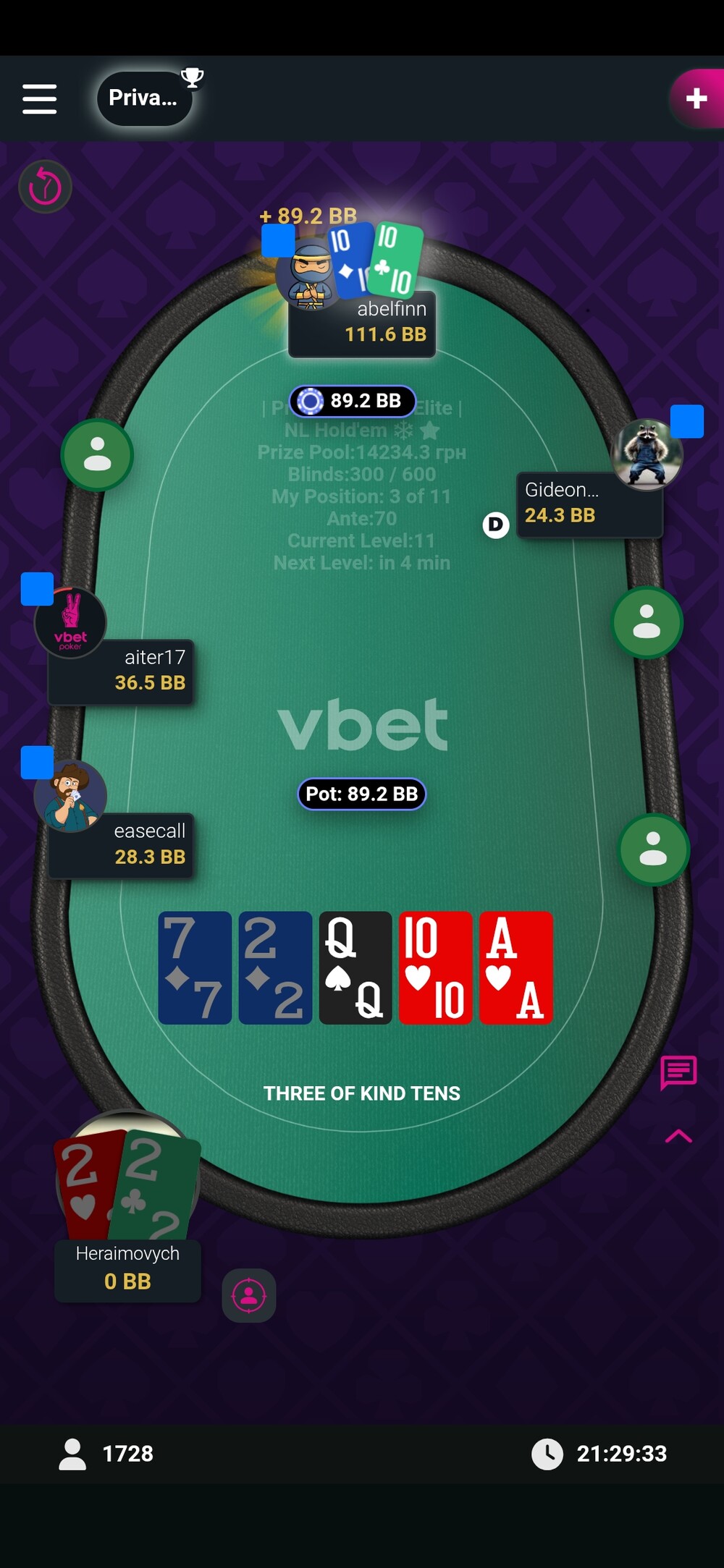 В п'ятницю в хомці все також погано склалось. Але весь турнір йшов у топах, і вже при 11 гравцях виставились на терні з Абелфін і я вилетів від сету старше.