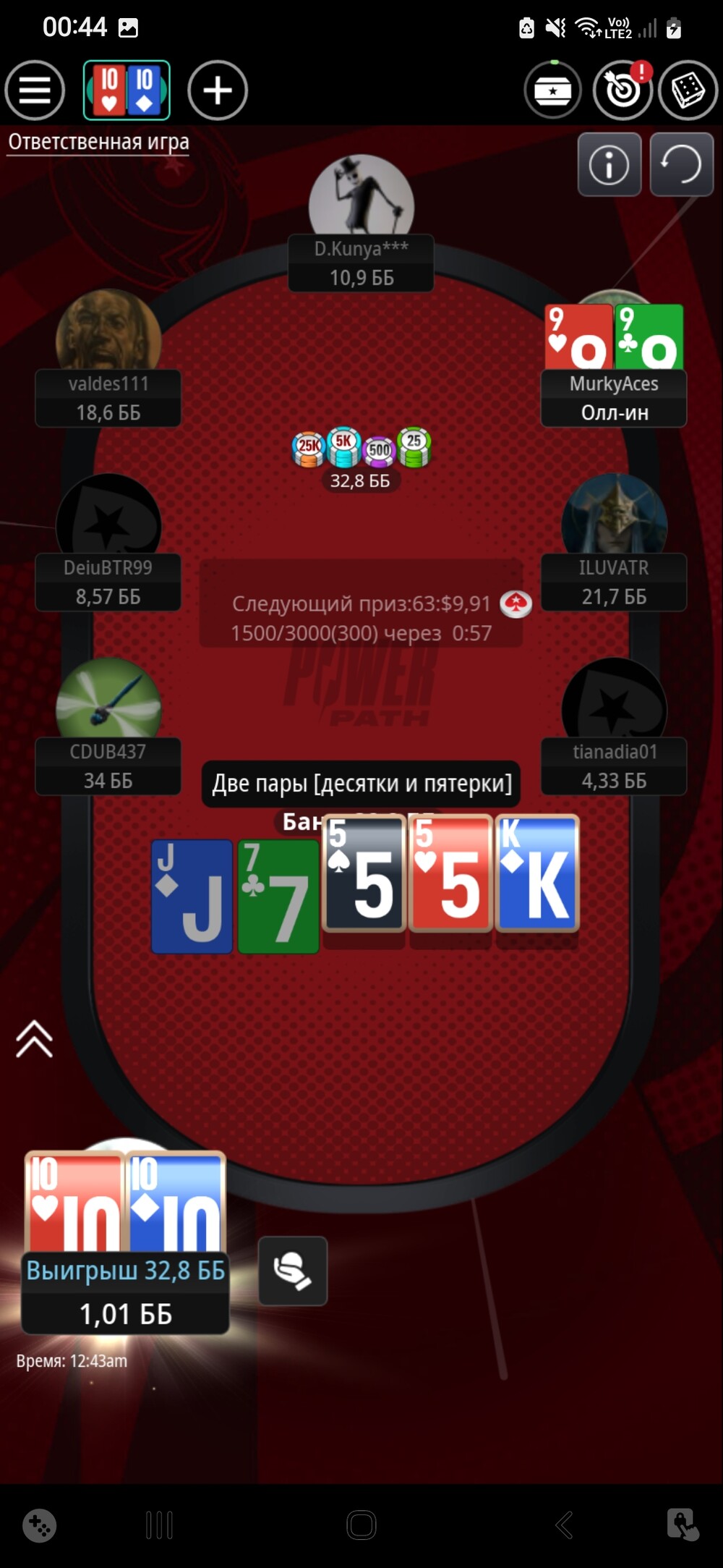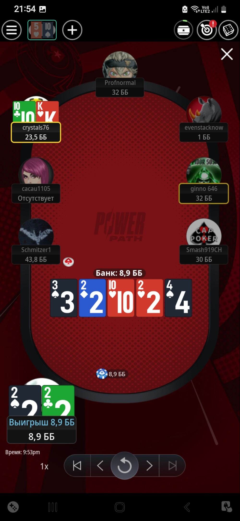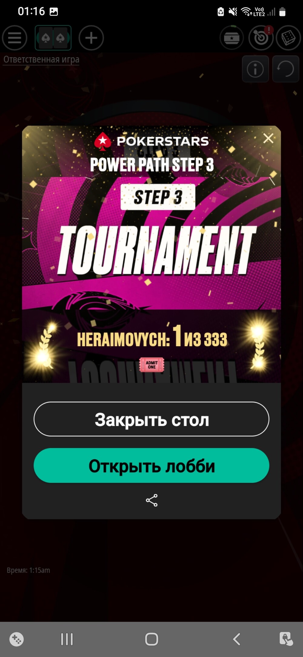 Також паралельно проходив стадії Power Path від покерстарз. Пройшов спін, отримав білет за долар, там також зайняв перше місце і отримав білет за 11$. В третій стадії гра складалась.