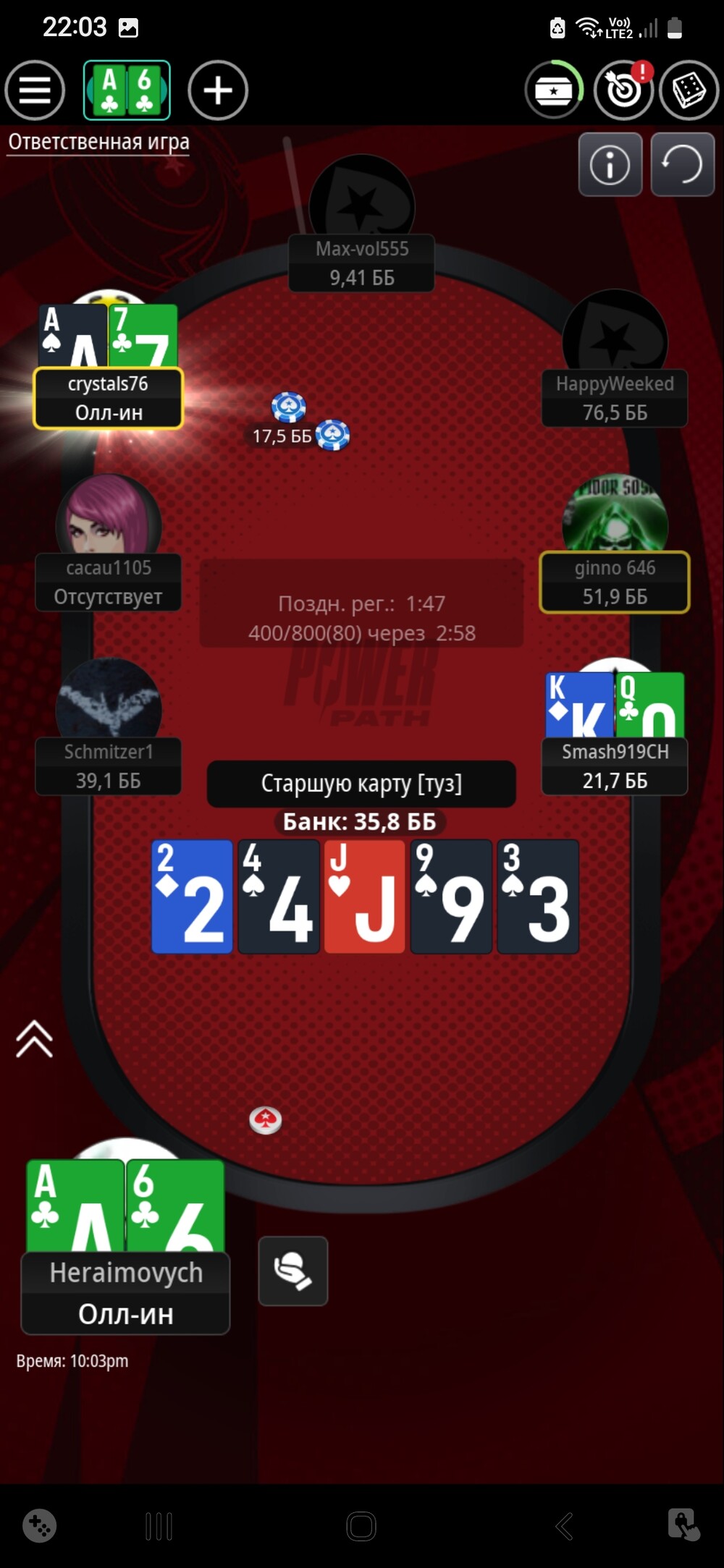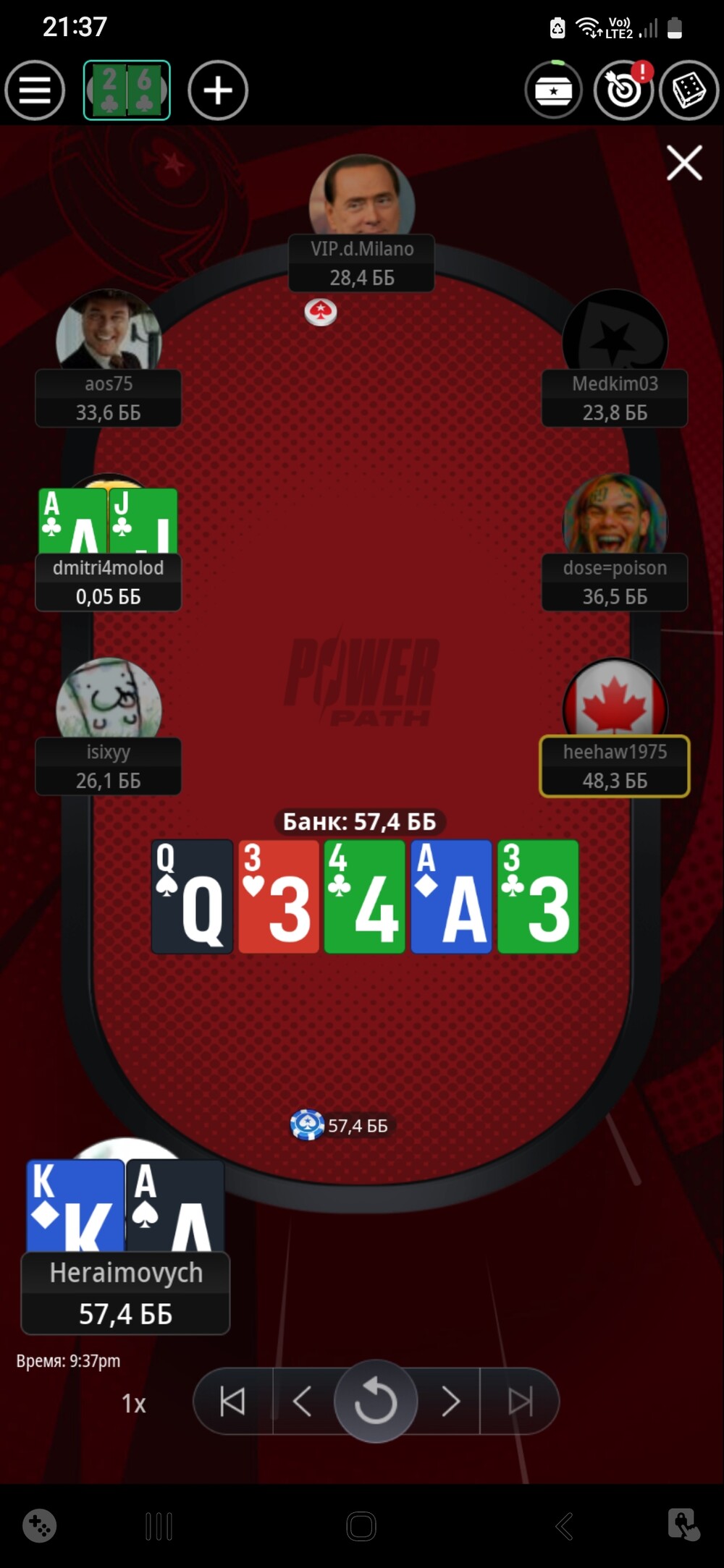 В наступній роздачі спіймав карету і подвоїв стек.