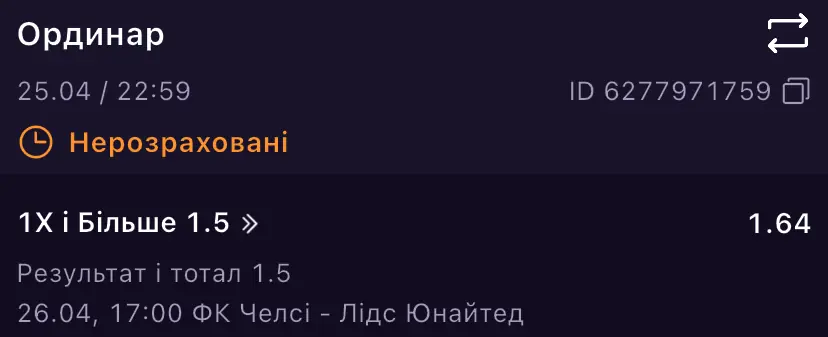 2) У півфінальному матчі кубка Англії Челсі проти Лідса очікую непрограшу лондонців і тотал більше 1,5 гола: