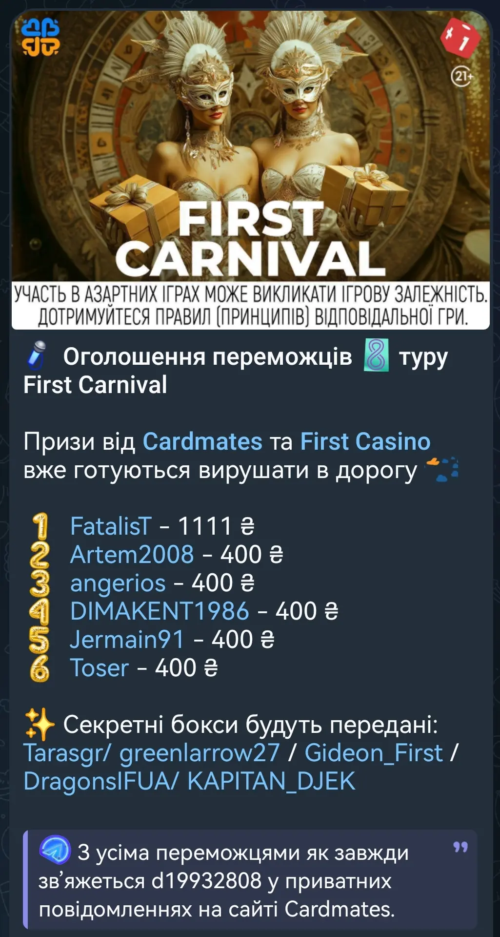 Цього ж разу свій приз я вже отримав сам, оскільки це був грошовий переказ — 1111 грн.