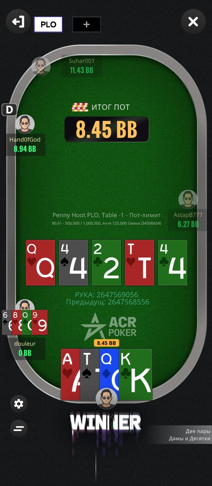 Гра довго не тривала з першої роздачі і до побачення 😁